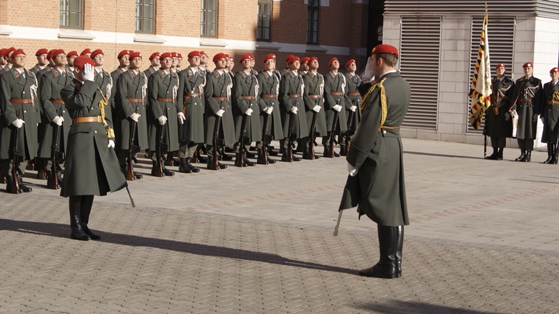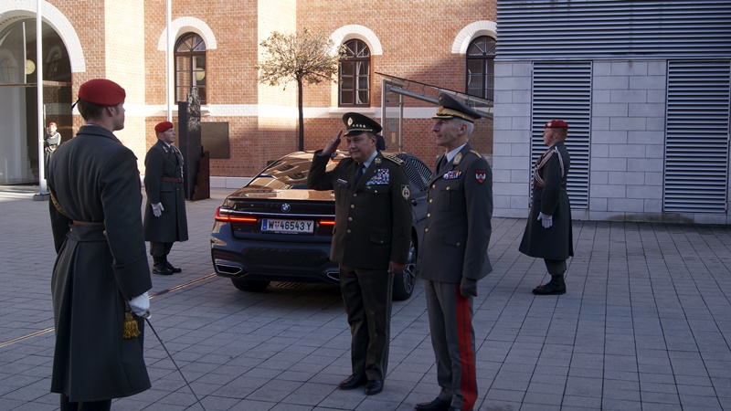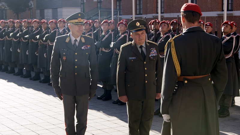 Gestern besuchte der Generalstabschef der slowakischen Streitkräfte, General Daniel Zmeko offiziell das Österreichische Bundesheer. Dazu stellte die Garde den Empfang mit militärischen Ehren im Amtsgebäude ROSSAU des BMLV mit anschließender Ehrenwache sicher.