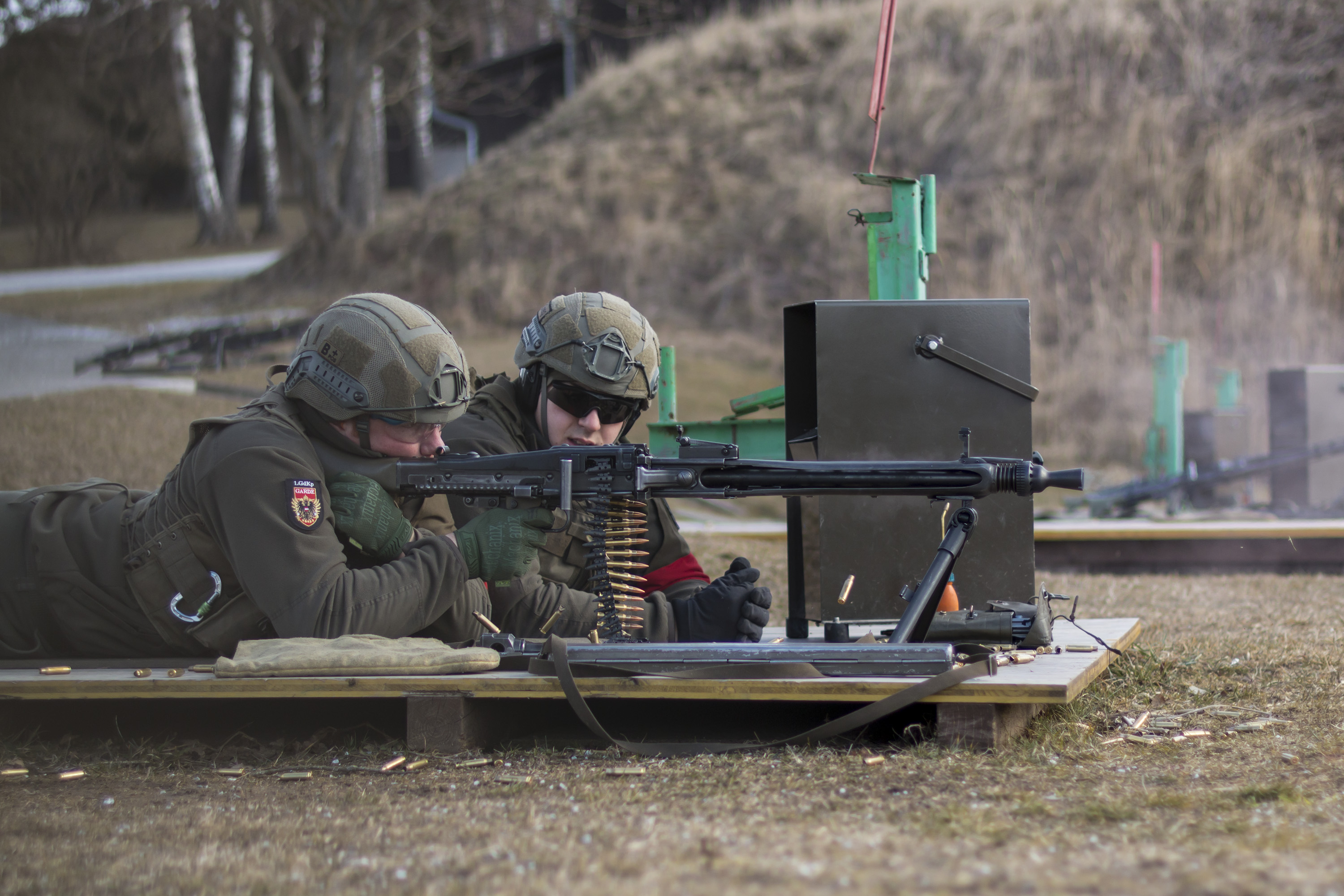 Neben der Ausbildung von 230 Rekruten des Einrückungstermines März absolviert das Kader der 1. Gardekompanie eine Reihe von Scharfschießen mit verschiedenen Waffen (MG74, üsMG) sowie ein Handgranatenwerfen um die bestmögliche Ausbildung sicherzustellen. (mat)