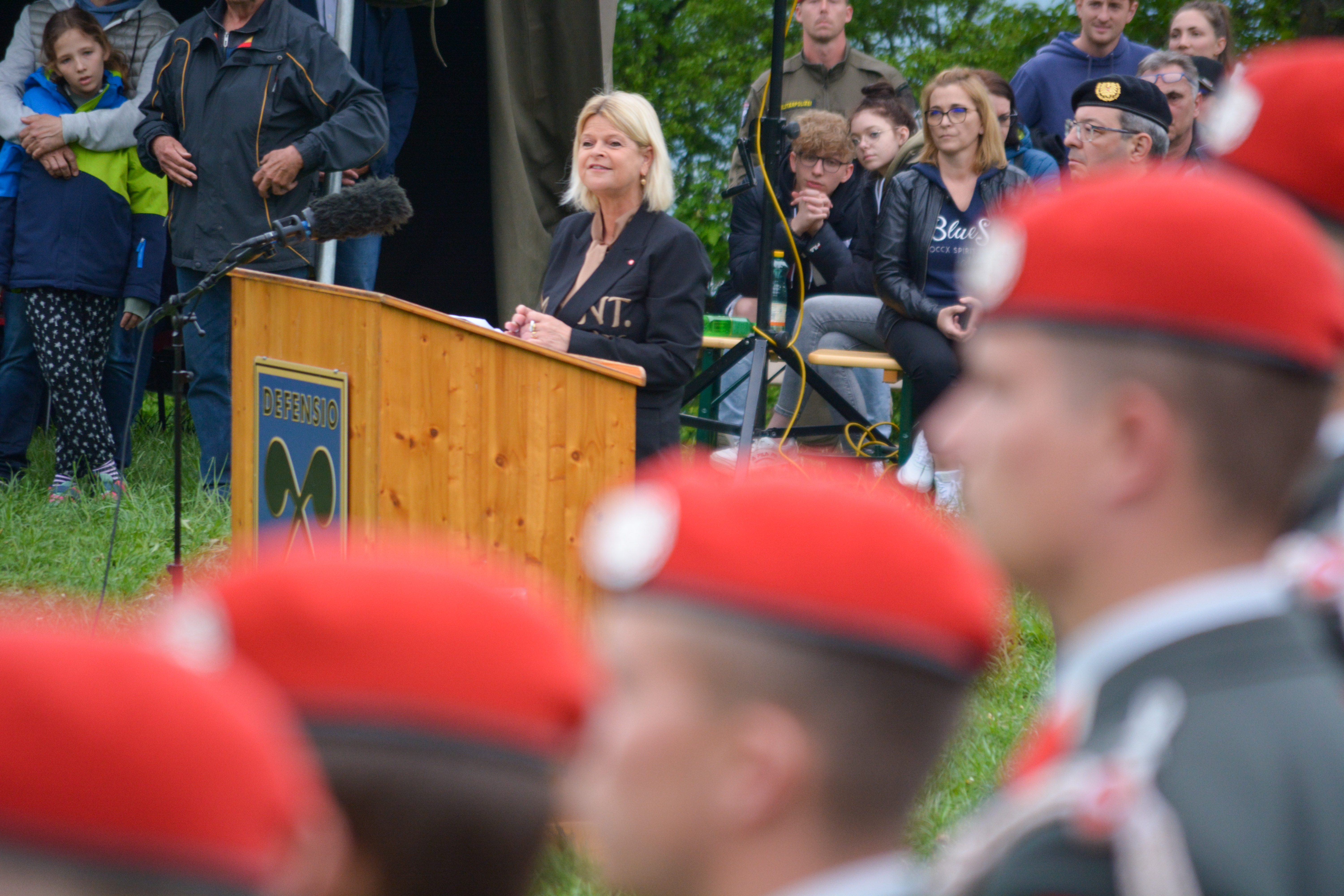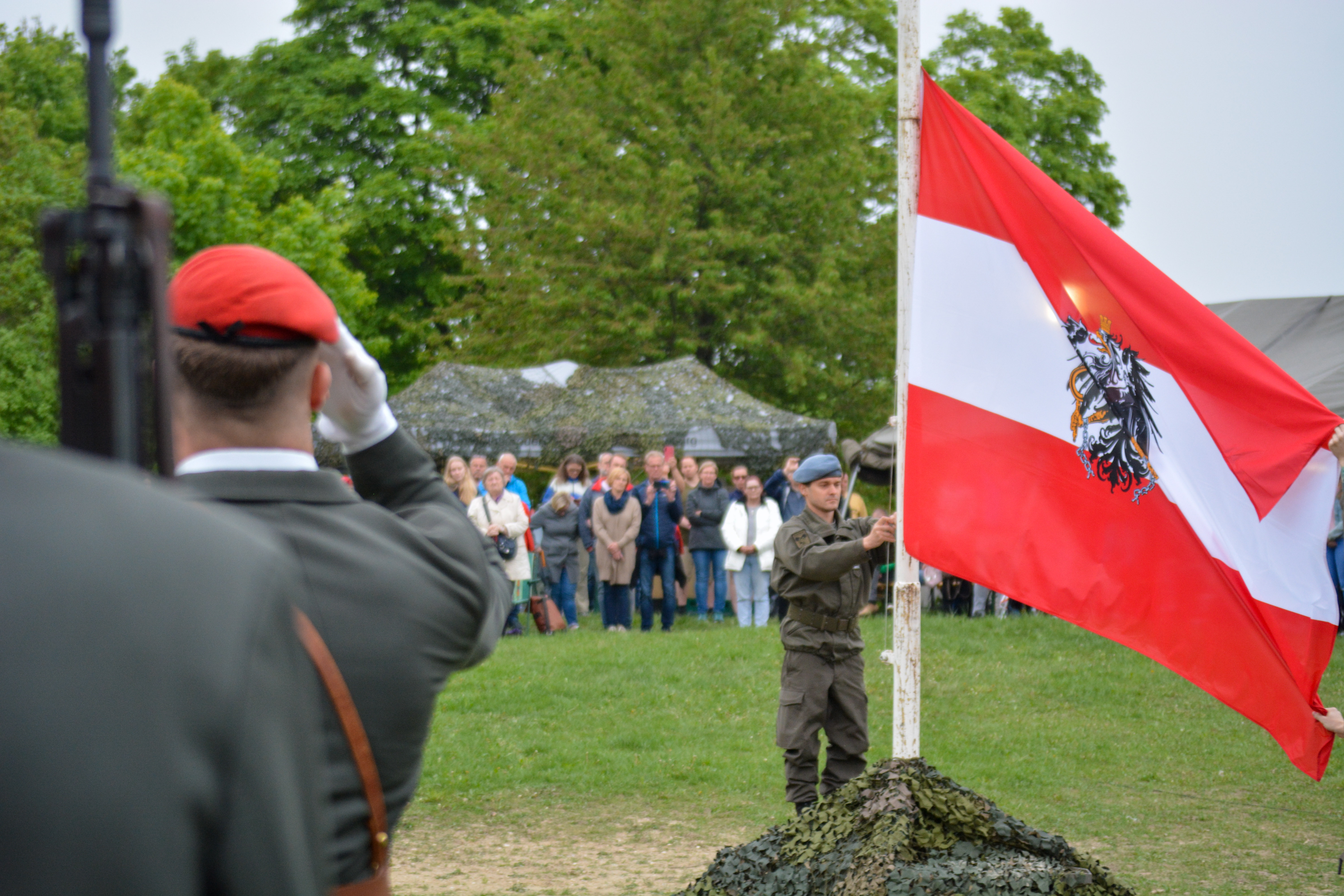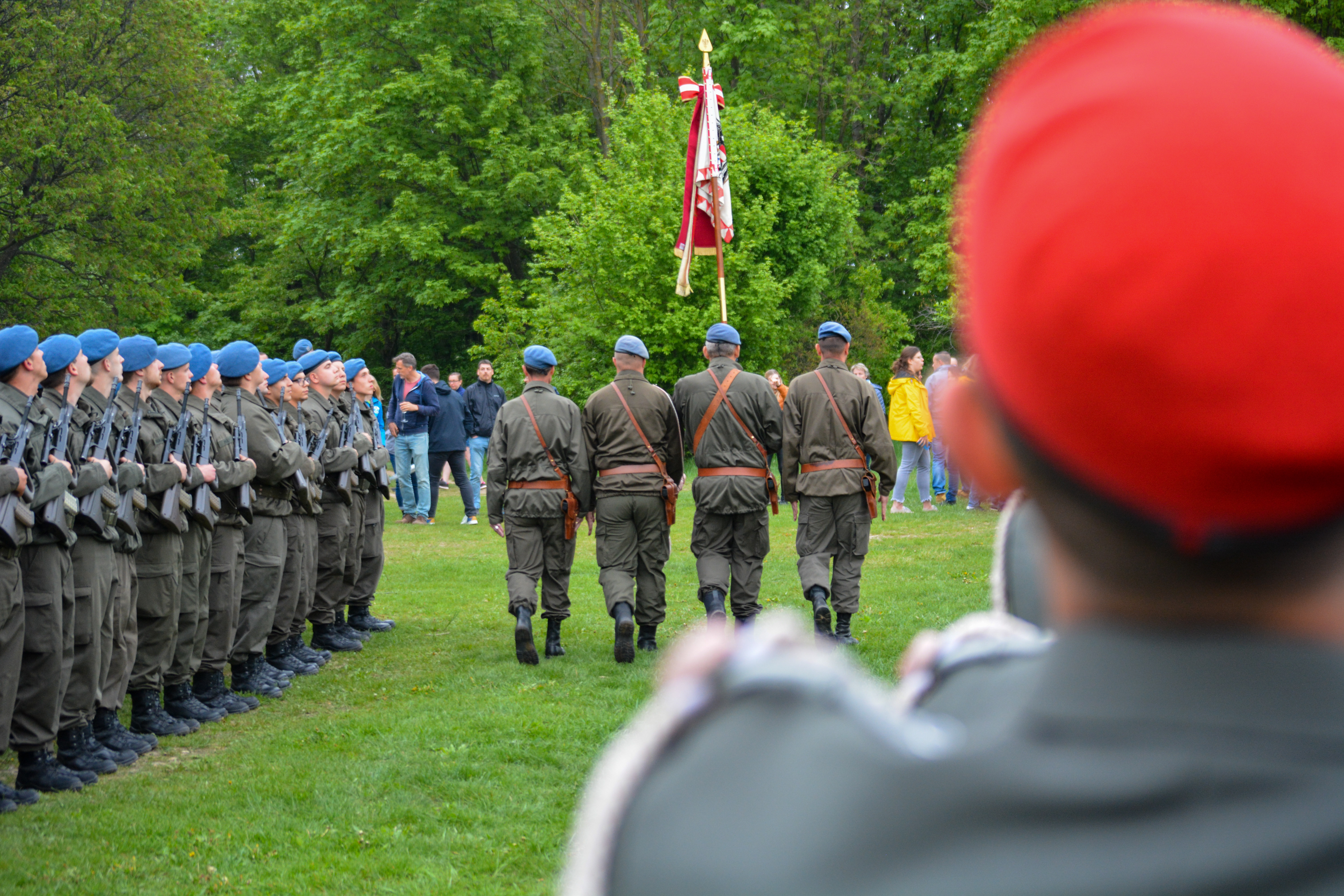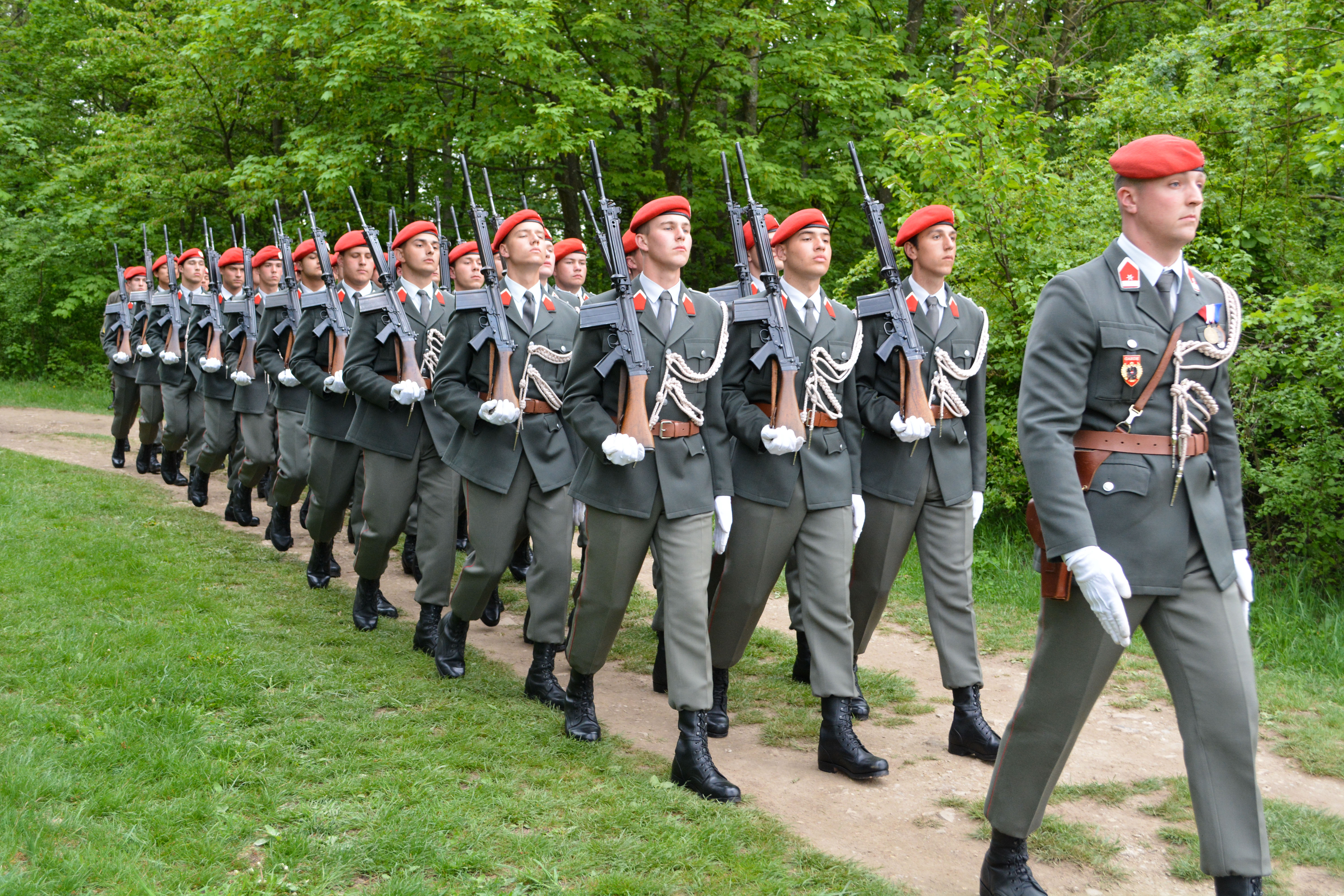 12. Mai 2022 | Garde Die Garde bei der Angelobung der Rekruten vom ABC-Abwehrzentrum mit „großem österreichischem Zapfenstreich“ am Bisamberg vergangenen Freitag. Fotos: Garde / Stankovic [Show slideshow]
