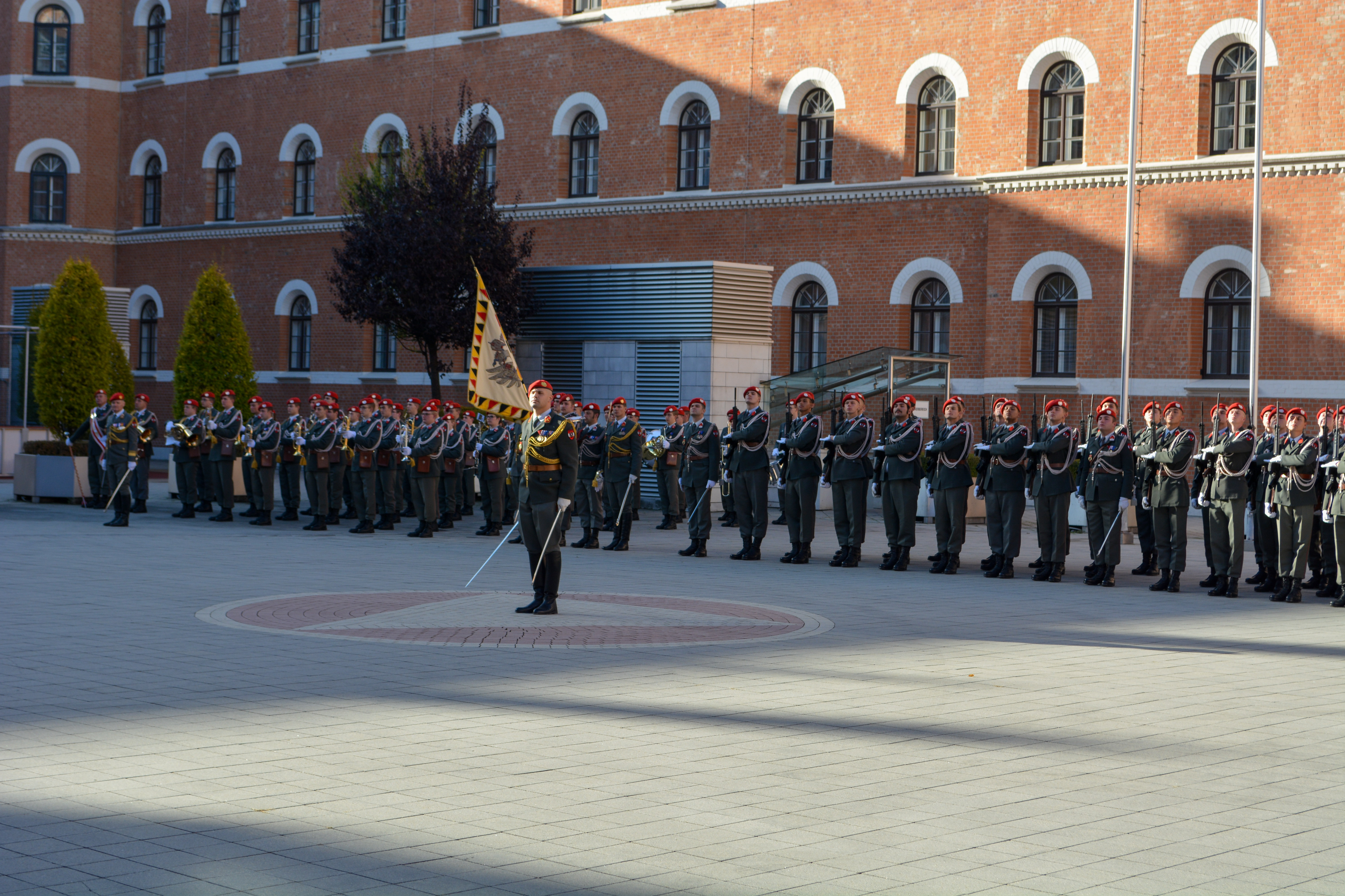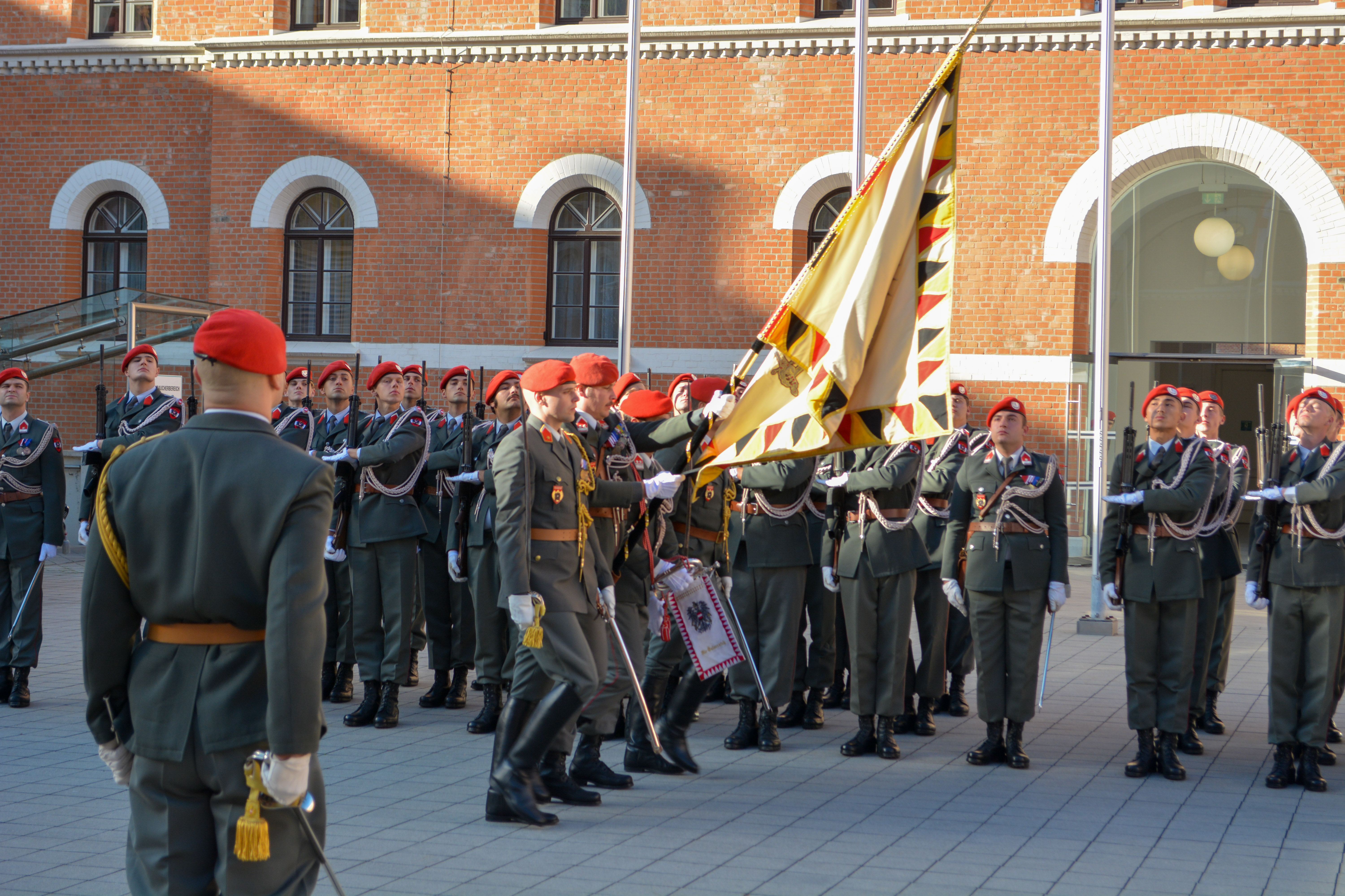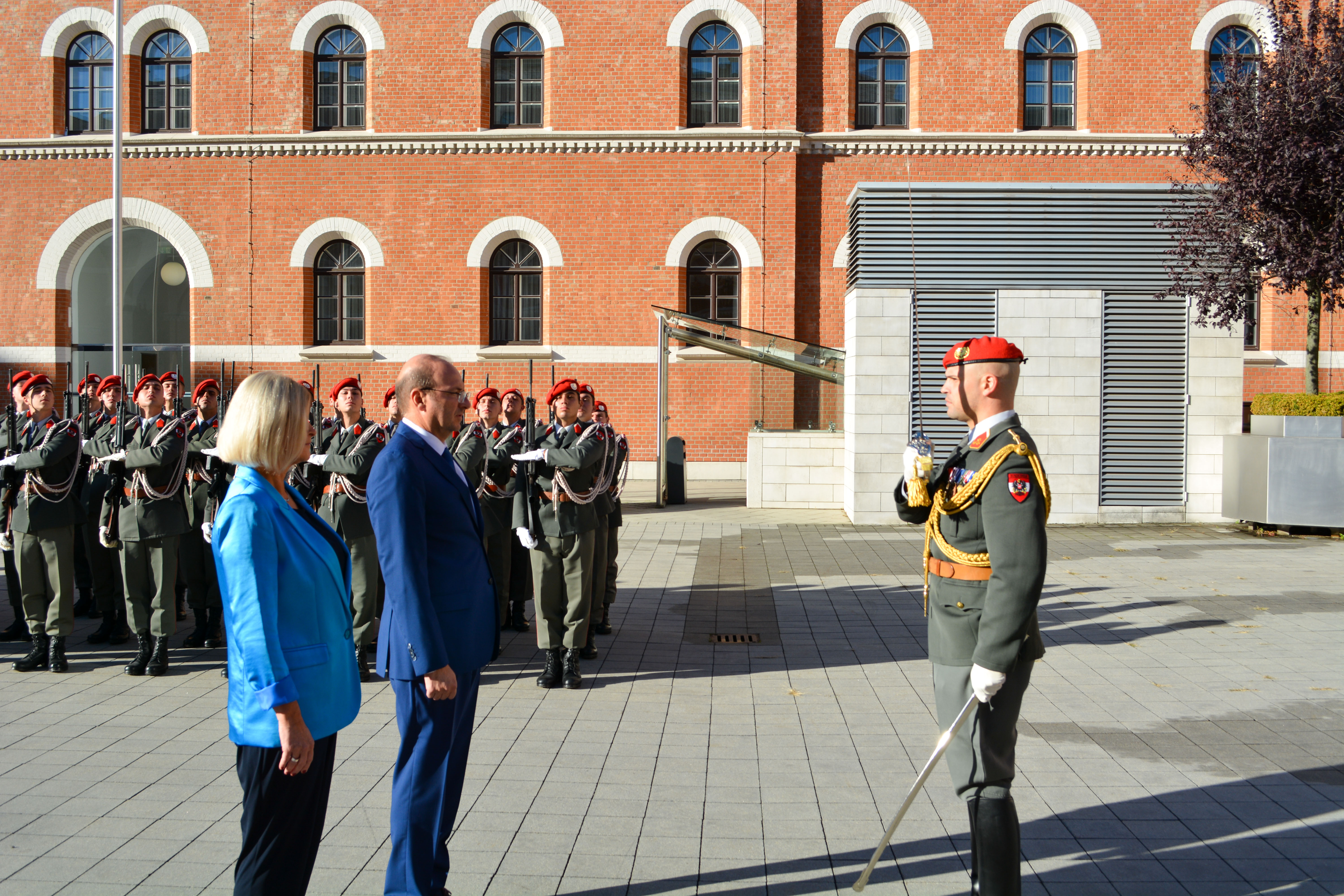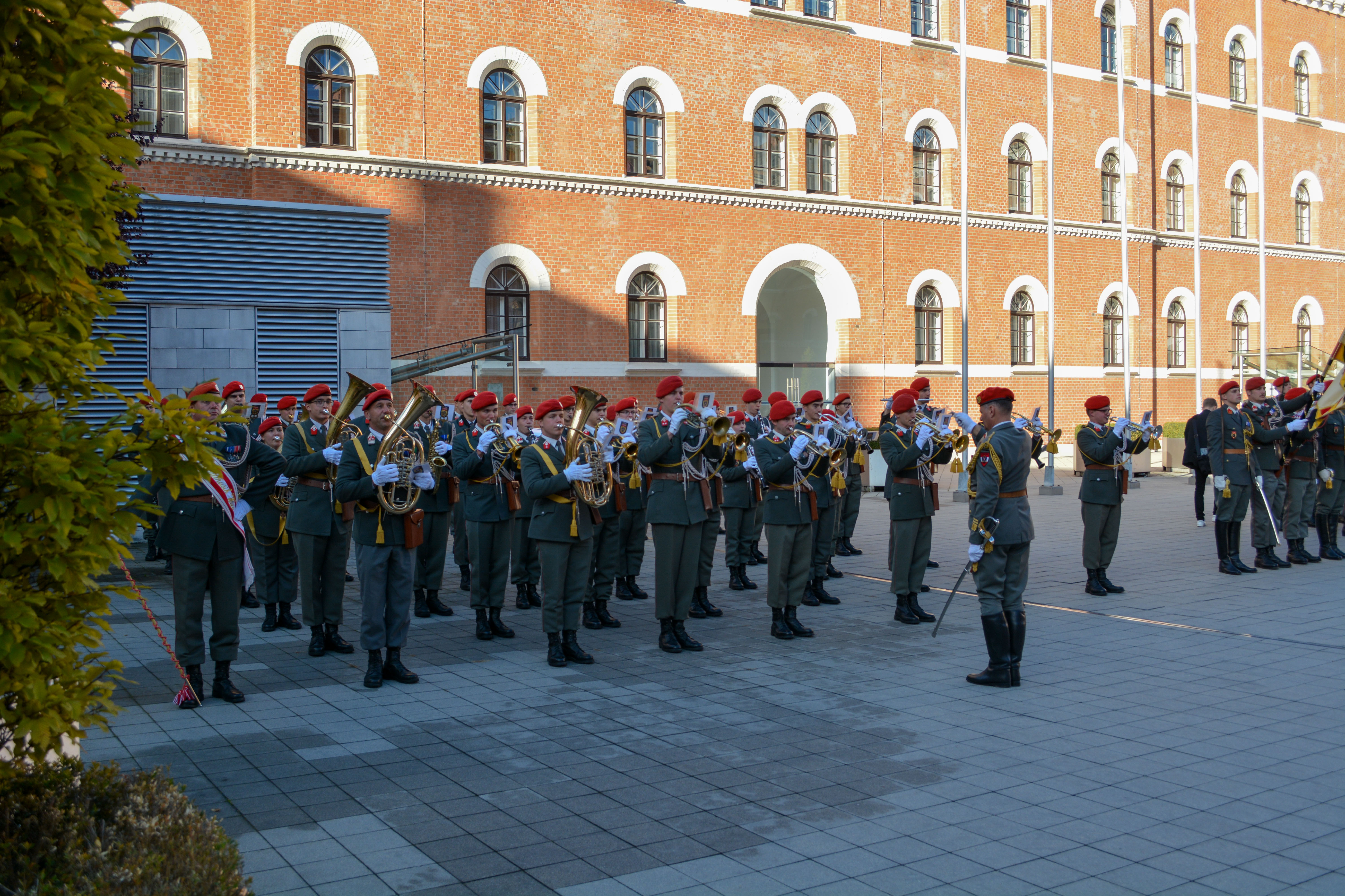 Verteidigungsministerin Klaudia Tanner hat am 5. Oktober ihren Amtskollegen aus Zypern, Charalambos Petrides mit militärischen Ehren empfangen. Die 4. Gardekompanie sowie die Gardemusik stellten bei diesem Empfang in der AG Rossau eine Ehrenformation.
