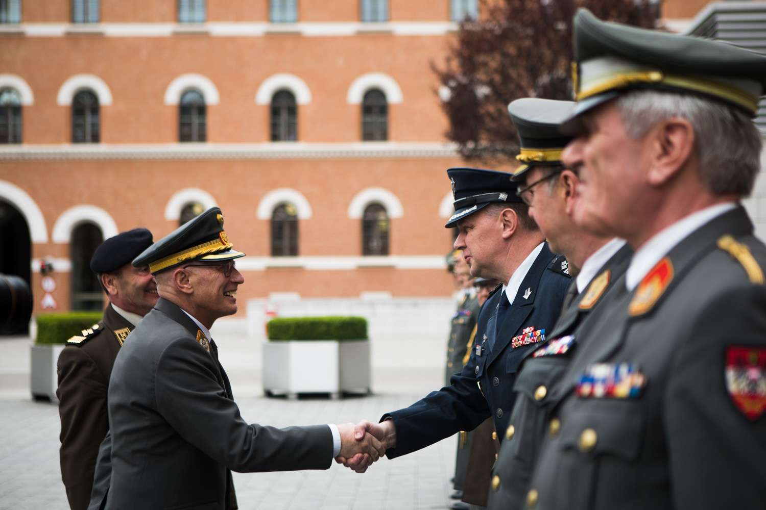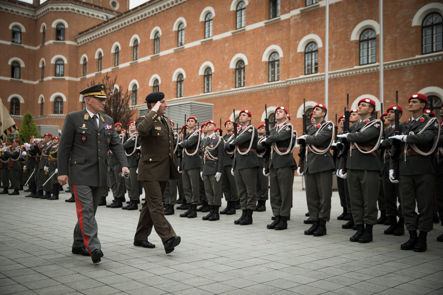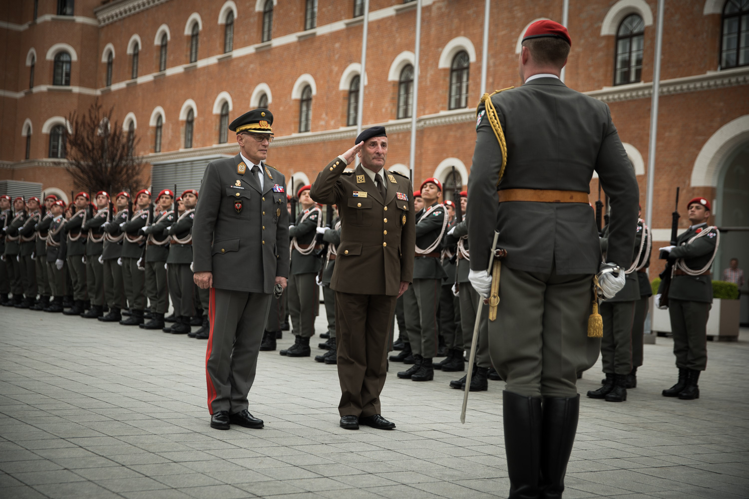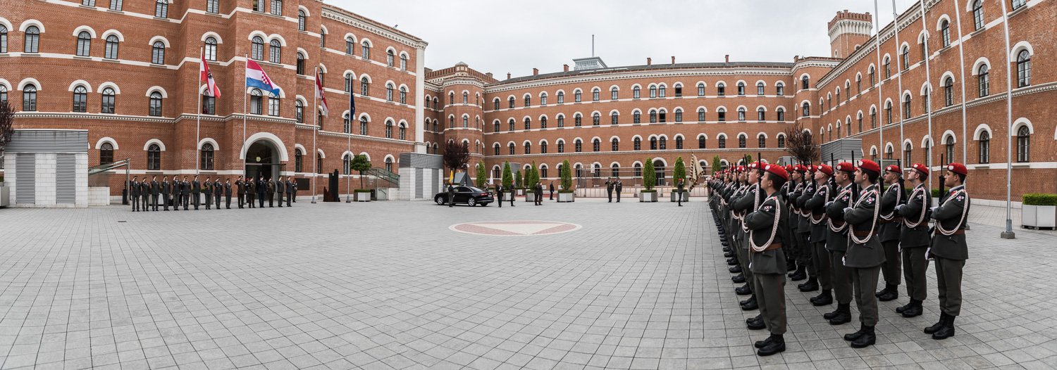Empfang des Chefs des Generalstabes der Streitkräfte der Republik Kroatien, General Mirko Šundov, D.Sc., auf Einladung von General Othmar Commenda in der Rossau mit einer Ehrenformation der 2. Gardekompanie und der Gardemusik.