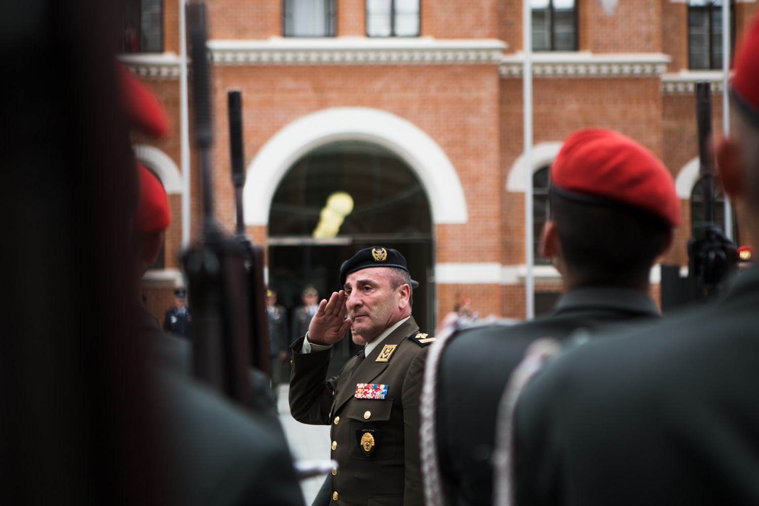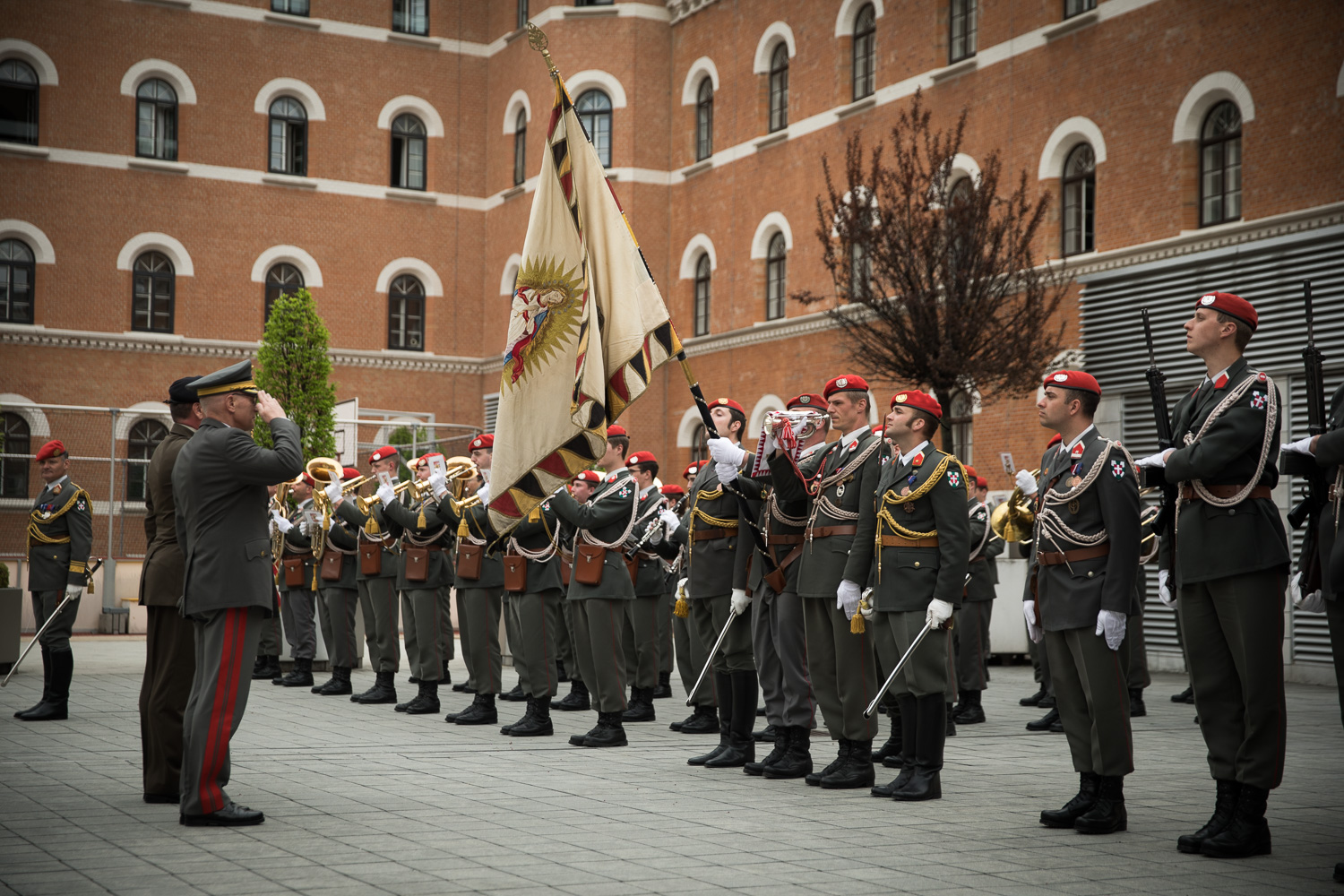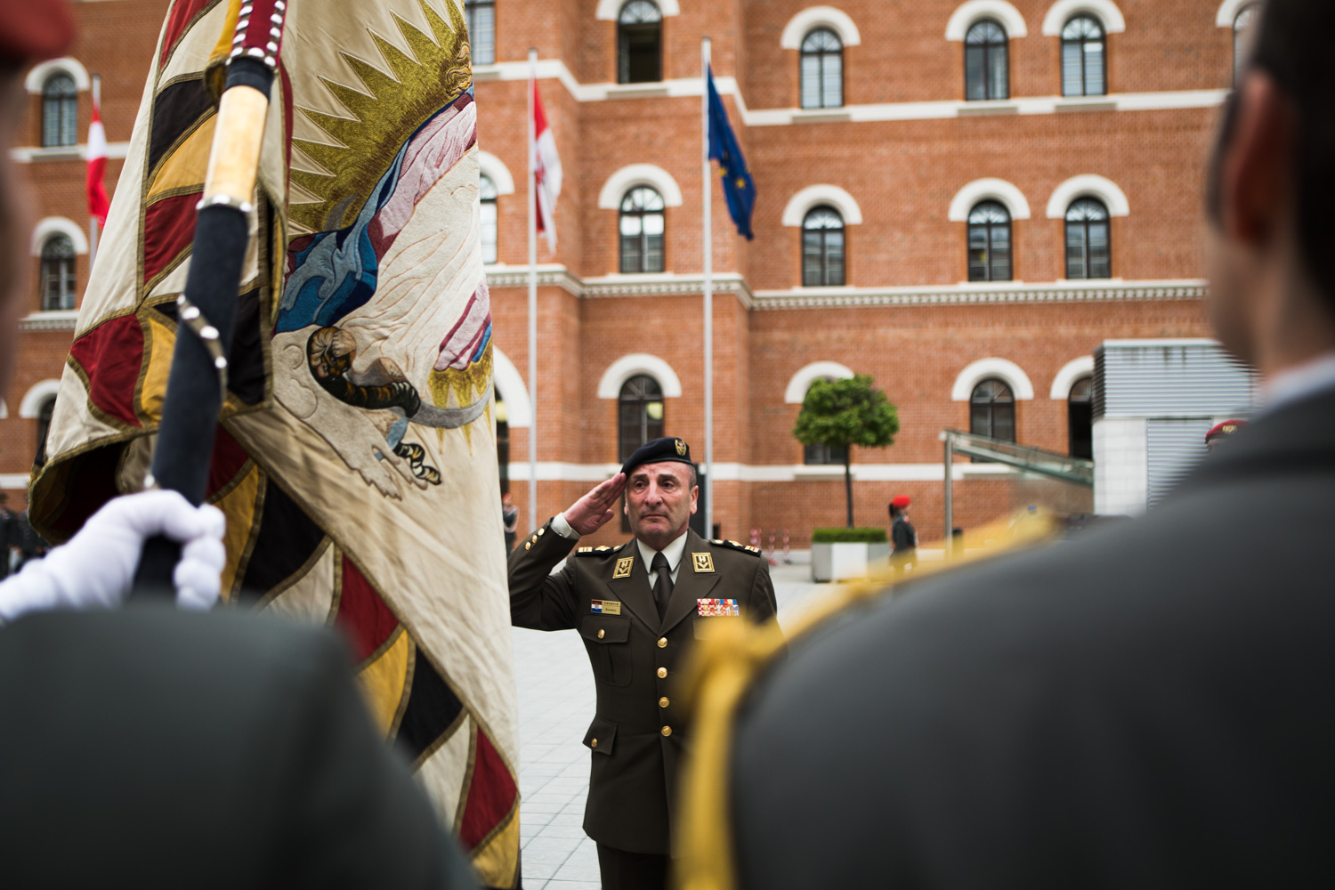 Empfang des Chefs des Generalstabes der Streitkräfte der Republik Kroatien, General Mirko Šundov, D.Sc., auf Einladung von General Othmar Commenda in der Rossau mit einer Ehrenformation der 2. Gardekompanie und der Gardemusik.