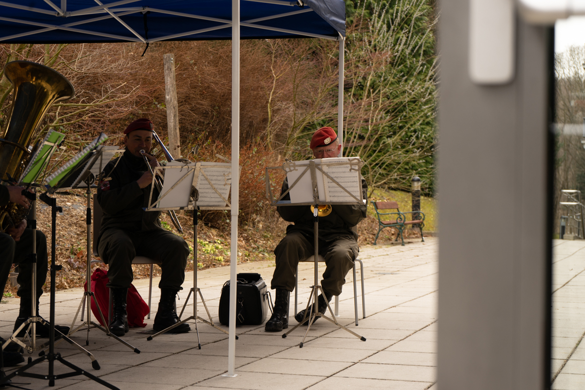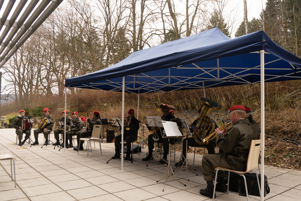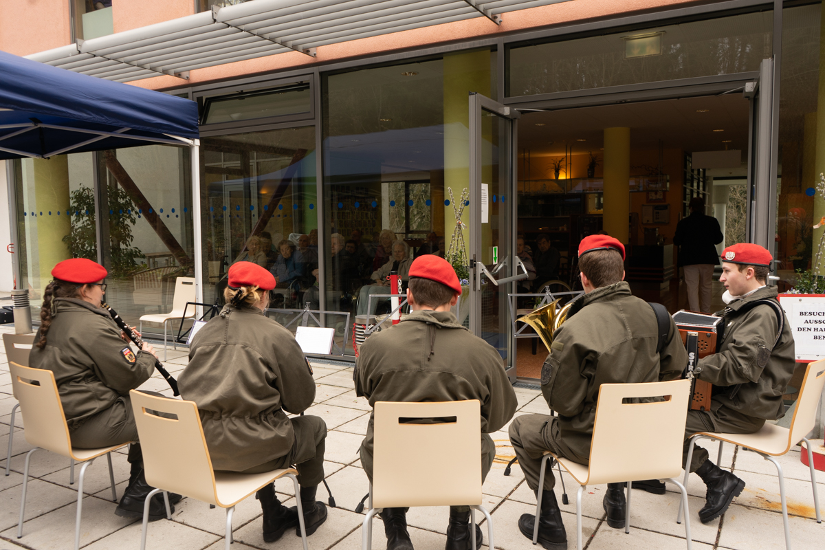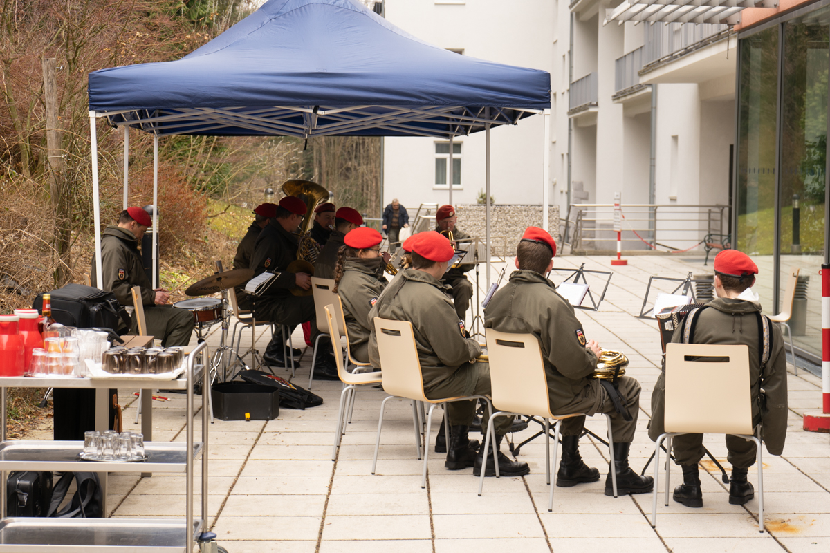 Ja, Sie haben richtig gelesen. Die Gardemusik hat am Mittwoch dem SeneCura Seniorenheim in Preßbaum einen Besuch abgestattet. Coronabedingt spielte das Orchester im Freien, während das geschätzte Publikum im Wintergarten verharrte. Dazu wurden ALLE Beteiligten einem COVID-Antigen-Schnelltest unterzogen. So konnten wir in dieser so schweren Zeit für gute Stimmung sorgen. Fortsetzung folgt!