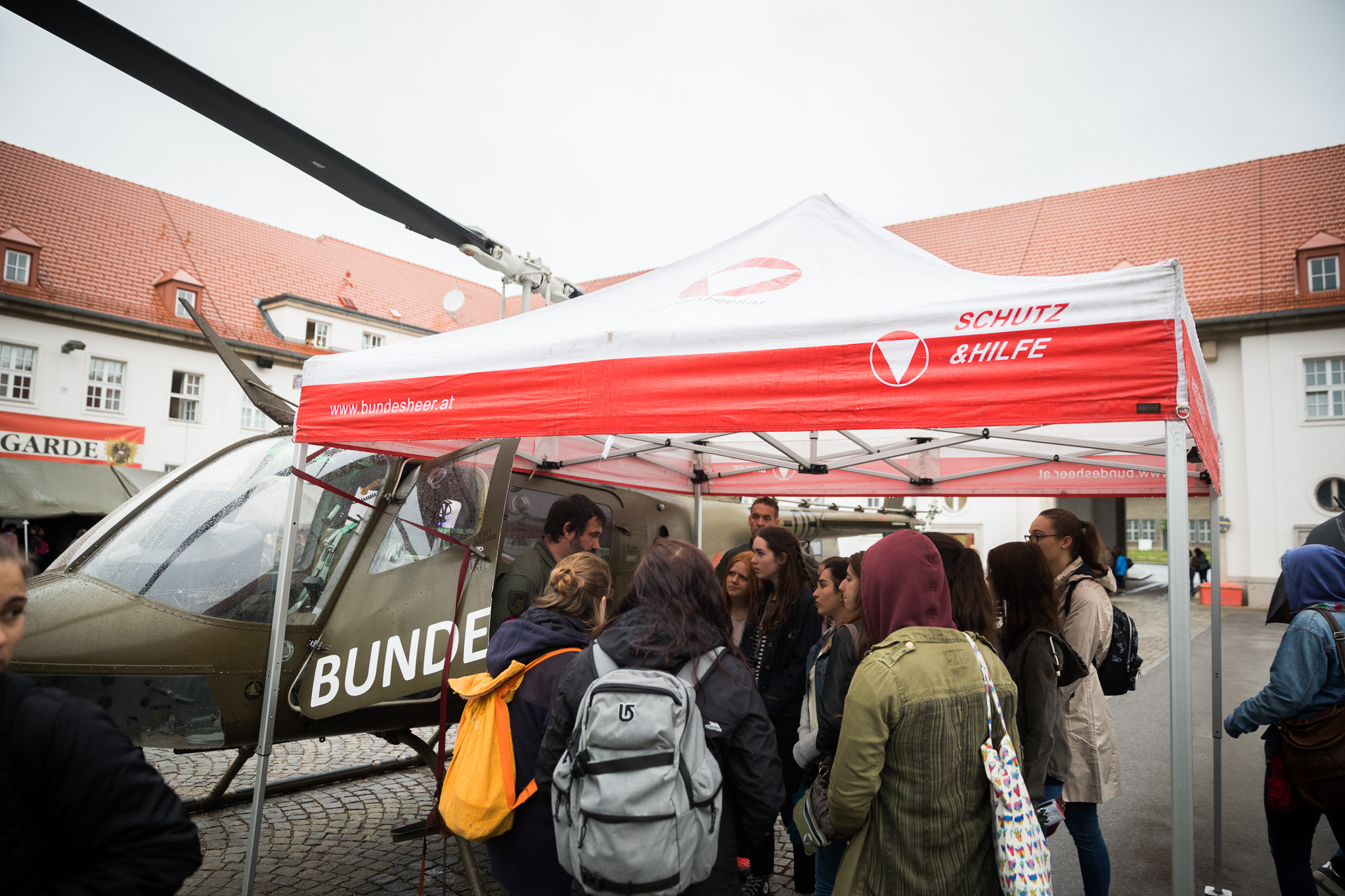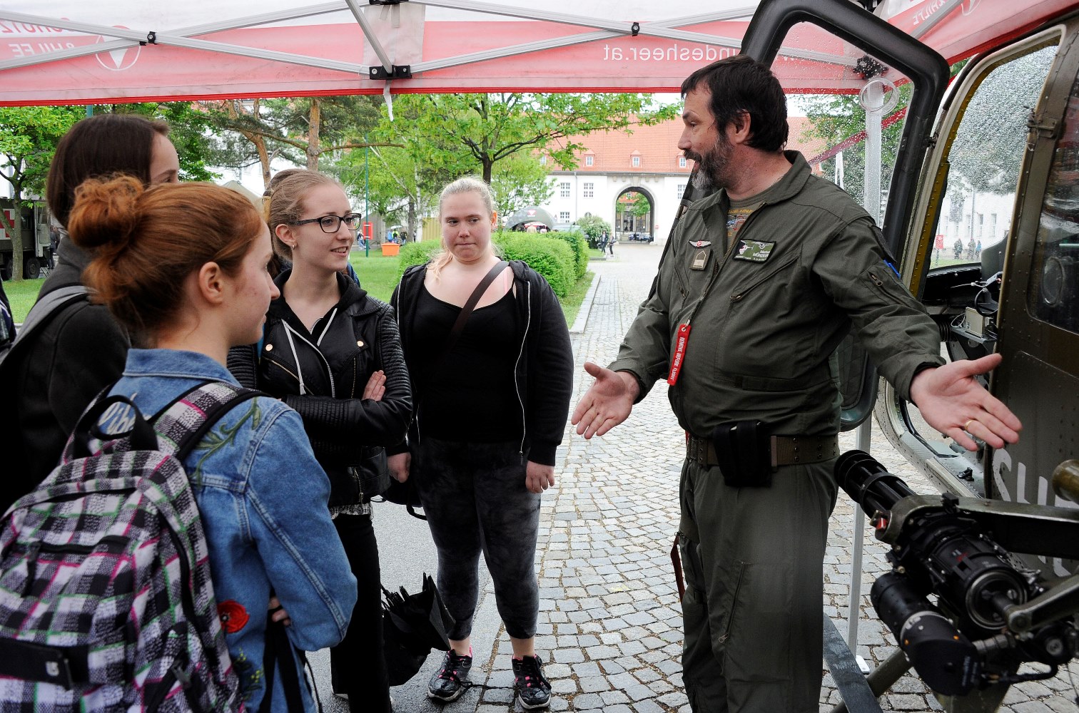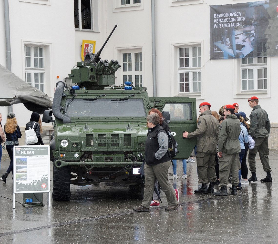 Trotz leichten Regens kamen 1.090 Girls zum Girl’s Day in die Maria Theresien Kaserne in Wien um sich über die Jobmöglichkeiten beim Bundesheer und die Ausrüstung und Gerät zu informieren. Bei Vorführungen durch die Garde und der Militärstreife/MP konnten die Girls aus nächster Nähe die Aufgaben von Soldaten miterleben.
