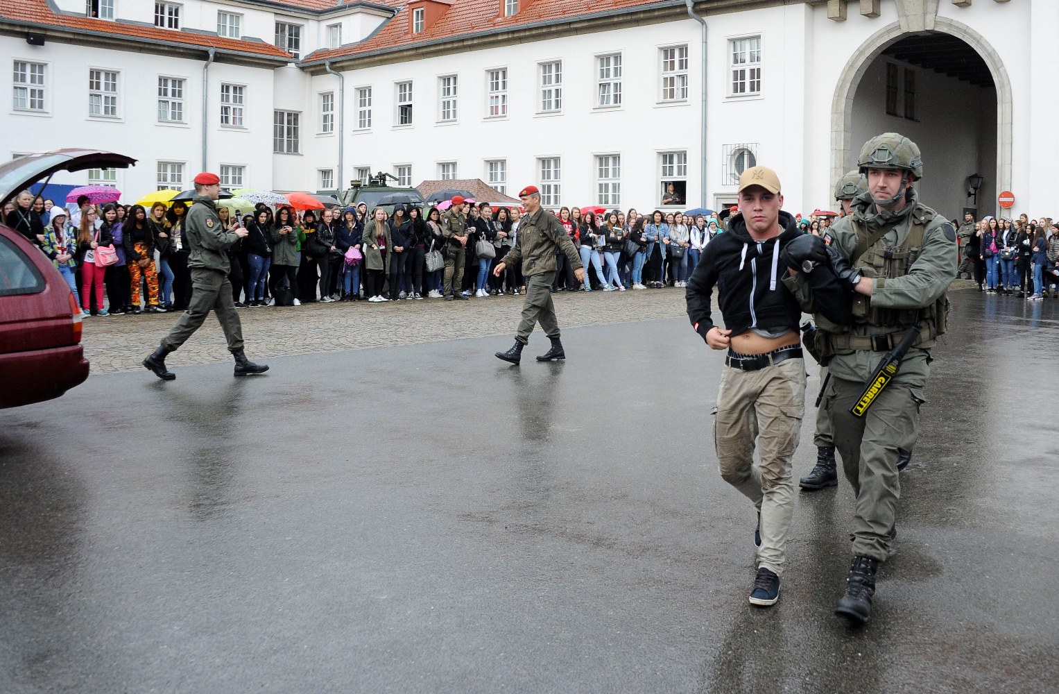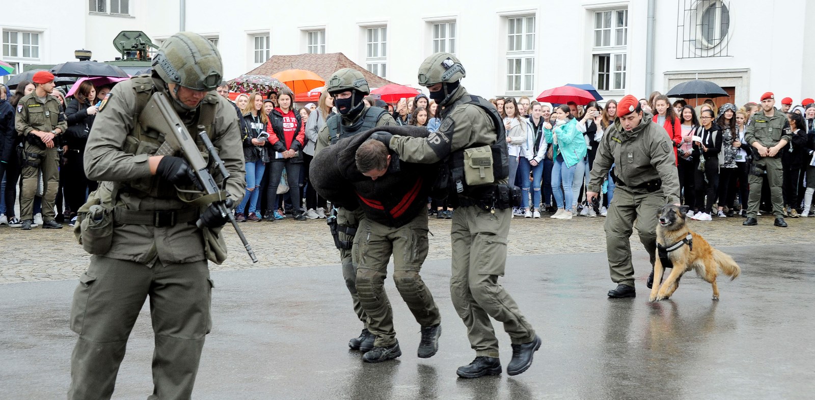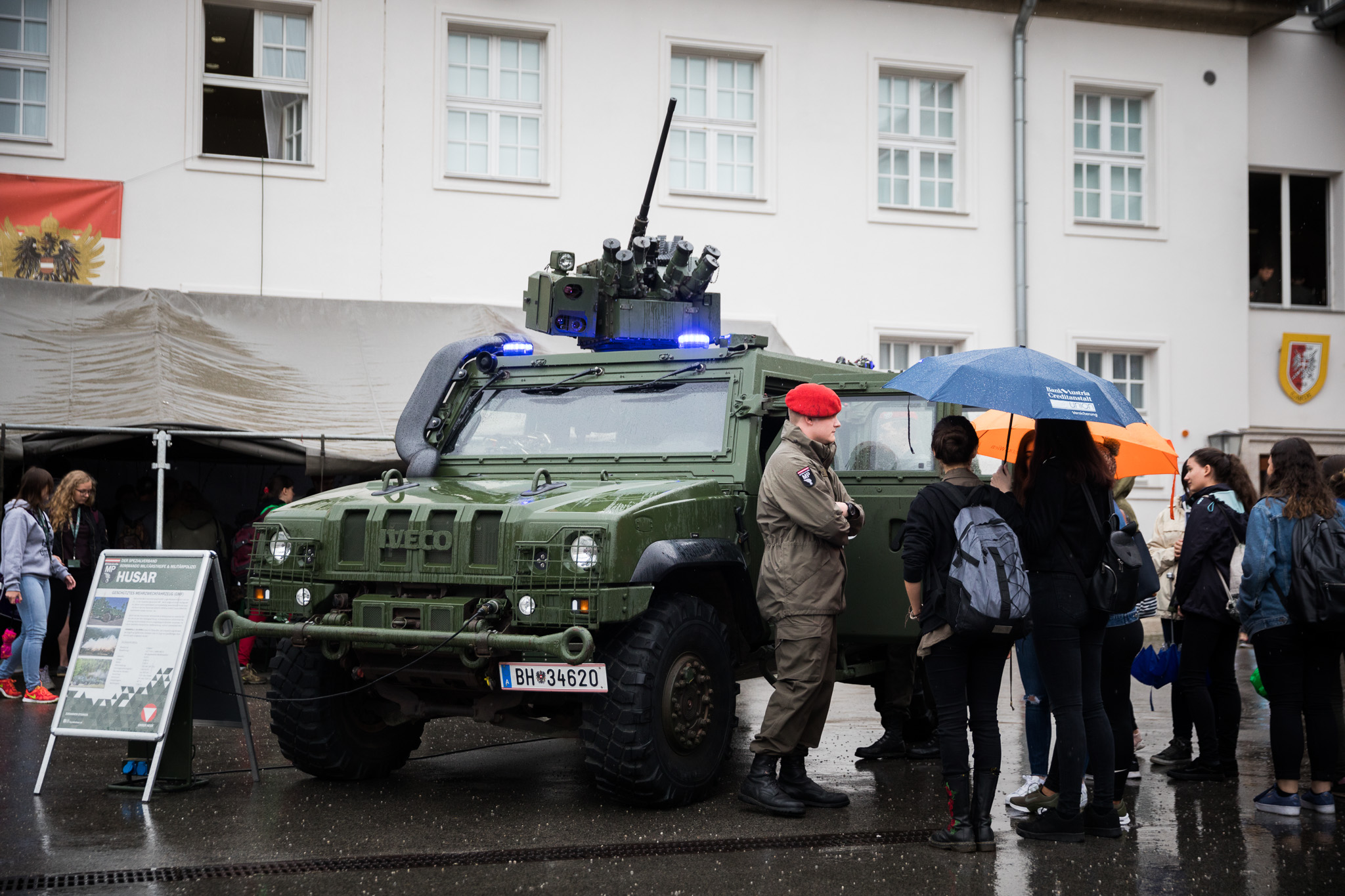 Trotz leichten Regens kamen 1.090 Girls zum Girl’s Day in die Maria Theresien Kaserne in Wien um sich über die Jobmöglichkeiten beim Bundesheer und die Ausrüstung und Gerät zu informieren. Bei Vorführungen durch die Garde und der Militärstreife/MP konnten die Girls aus nächster Nähe die Aufgaben von Soldaten miterleben.