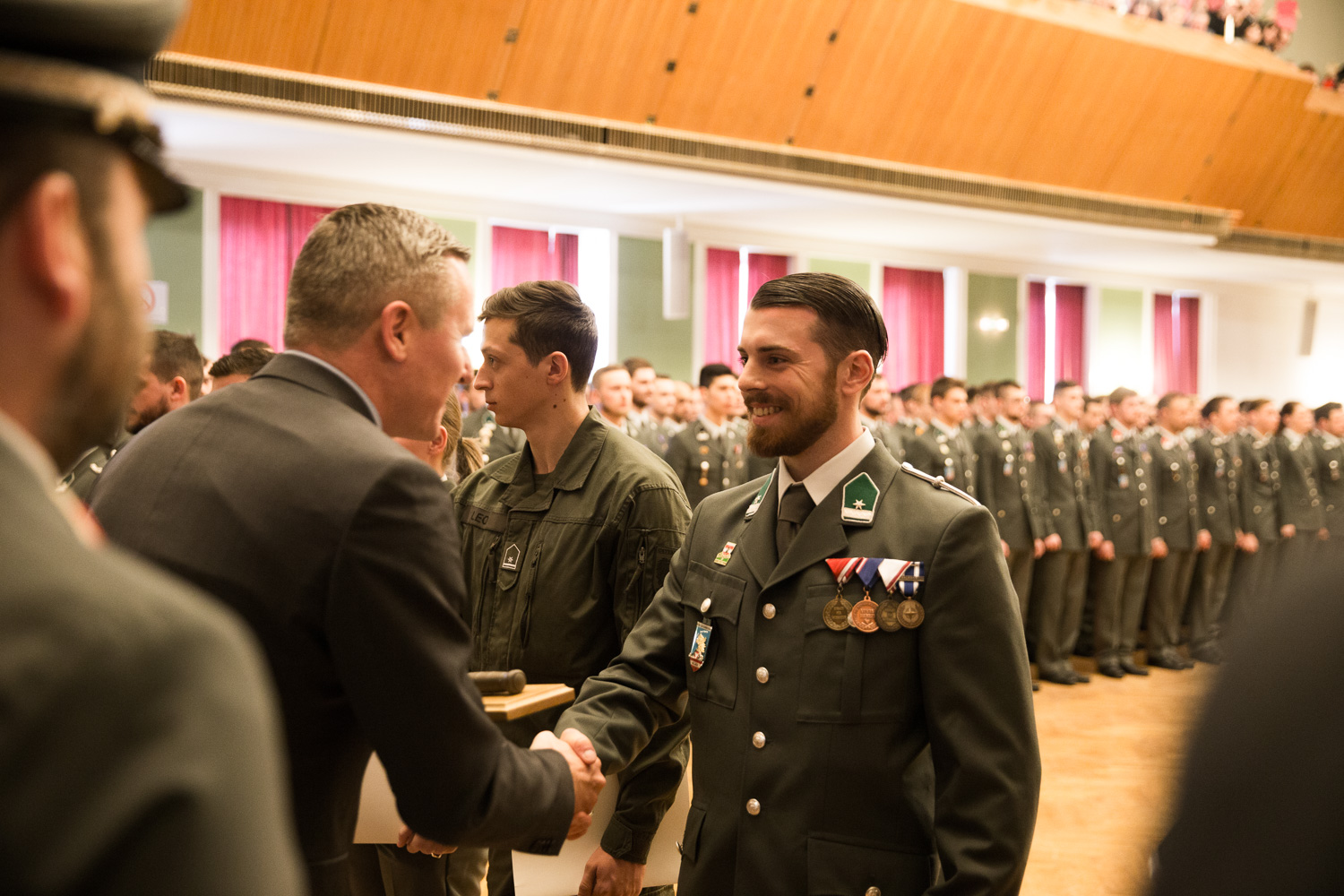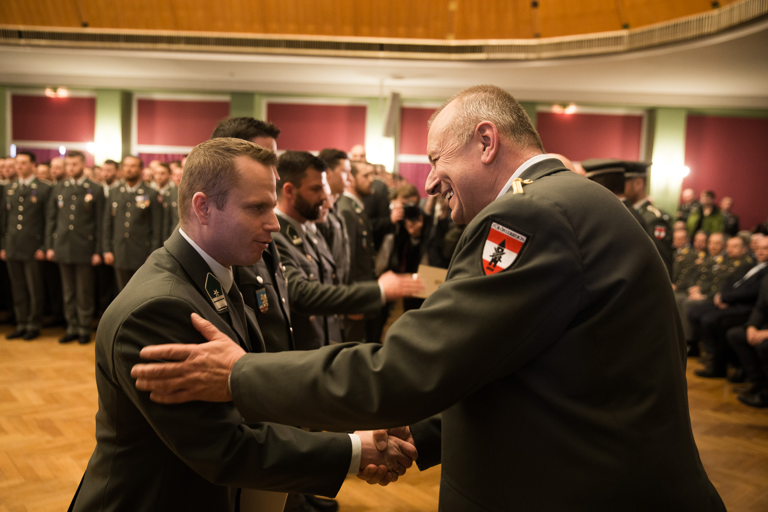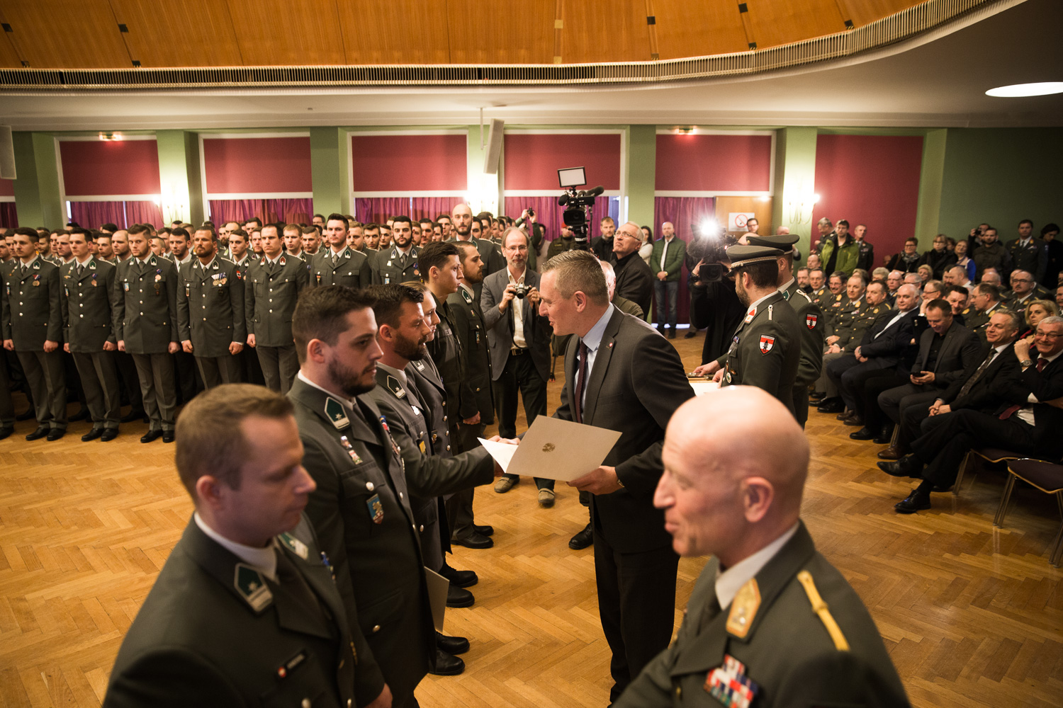 02. März 2018 | Garde Kadernachwuchs für Garde und Miliz ausgemustert Im Rahmen der Ausmusterung von jungen Unteroffizieren an der Heeresunteroffiziersakademie in ENNS für das Bundesheer wurden auch 23 neue Wachtmeister für die Garde und 5 Wachtmeister für die Miliz in Wien ausgemustert. (Fotos: Rainer) ◄ 1 2