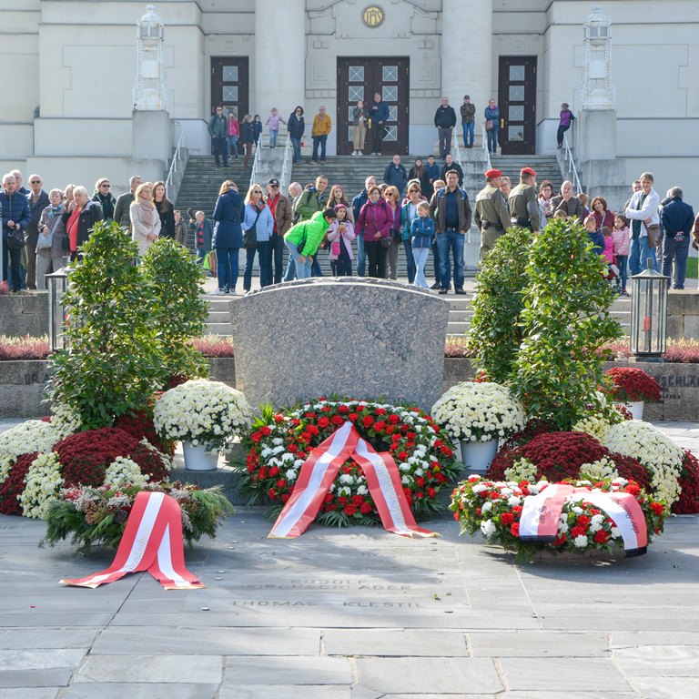 Wiens Landeshauptmann und Bürgermeister Michael Ludwig legte gemeinsam mit dem Militärkommandanten von Wien Brigadier Kurt Wagner Kränze an der Präsidentengruft am Wiener Zentralfriedhof nieder. Die 1. Gardekompanie stellte mit der Gardemusik Wien die Ehrenformation.