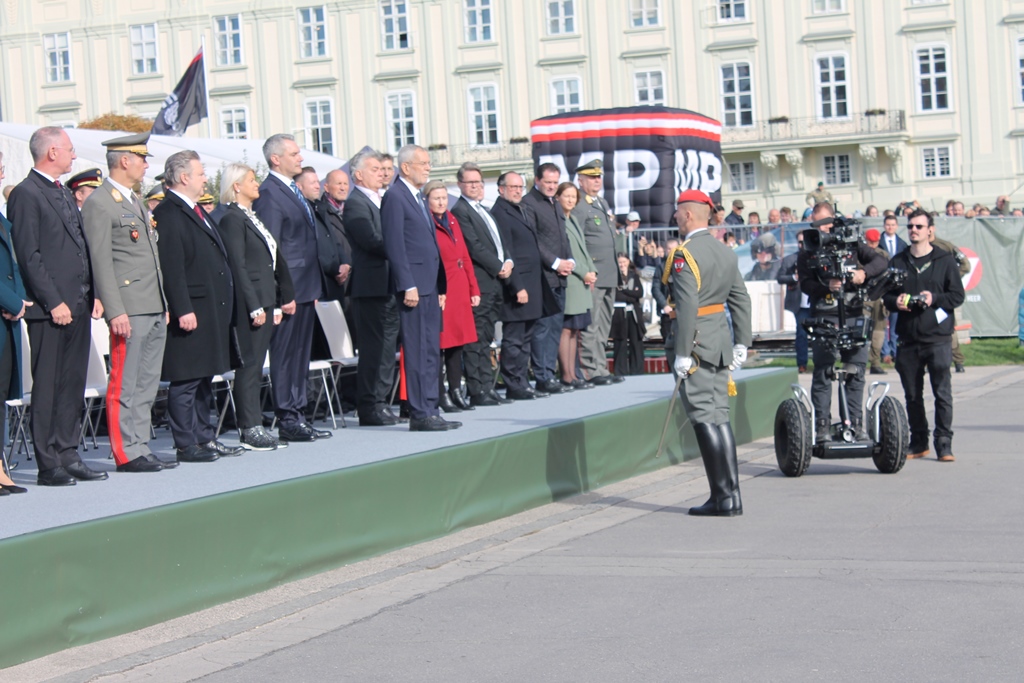 Traditionell eröffneten Kranzniederlegungen am Heldenplatz durch Bundespräsident Alexander Van der Bellen und der Bundesregierung mit Bundeskanzler Karl Nehammer an der Spitze die Feierlichkeiten zum Nationalfeiertag. Hunderttausende Besucher, die auf den geschichtsträchtigen Platz gekommen waren, begleiteten die Angelobung von 950 Rekruten, darunter 25 Soldatinnen, die das Treuegelöbnis auf die Republik Österreich sprachen.