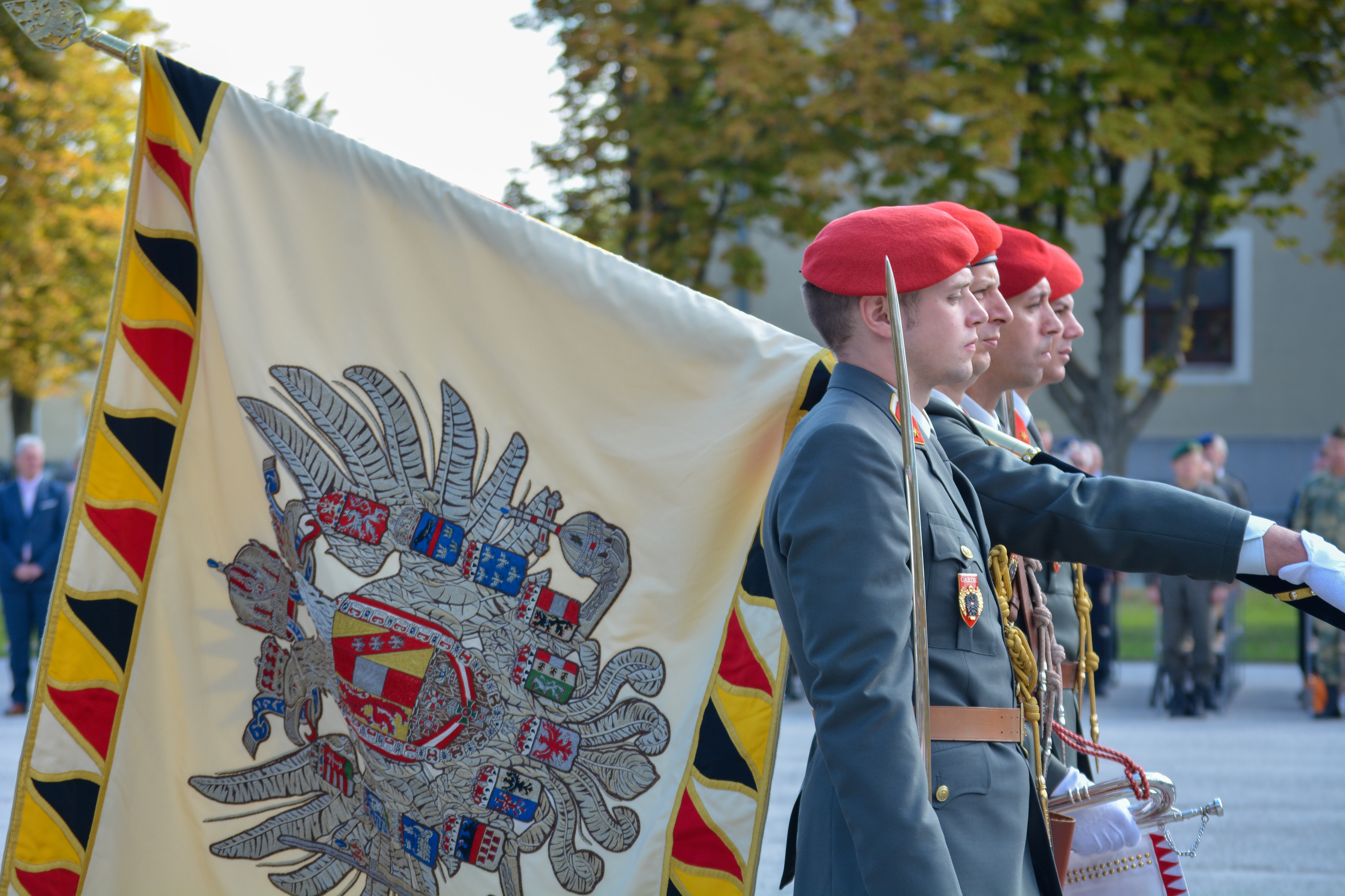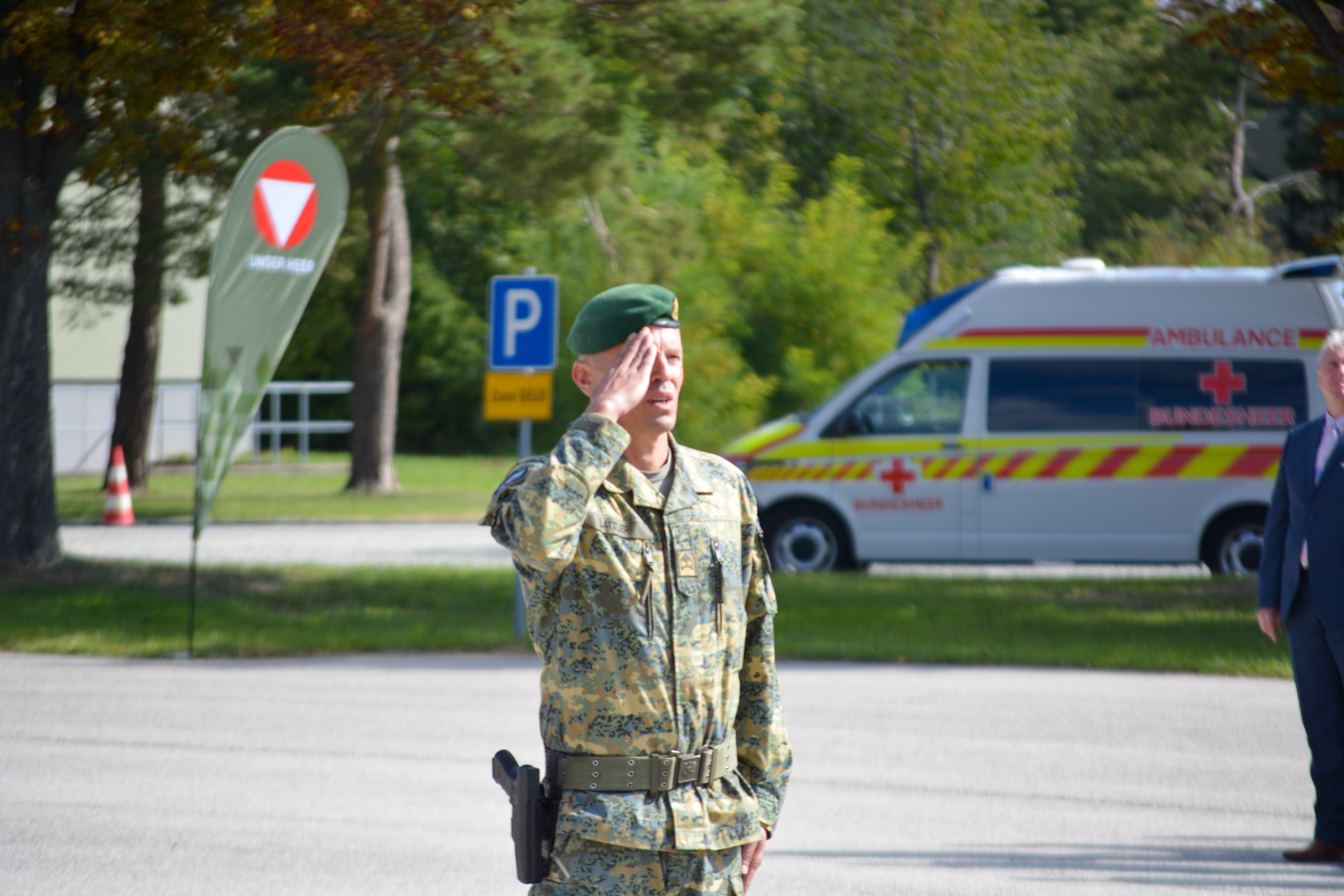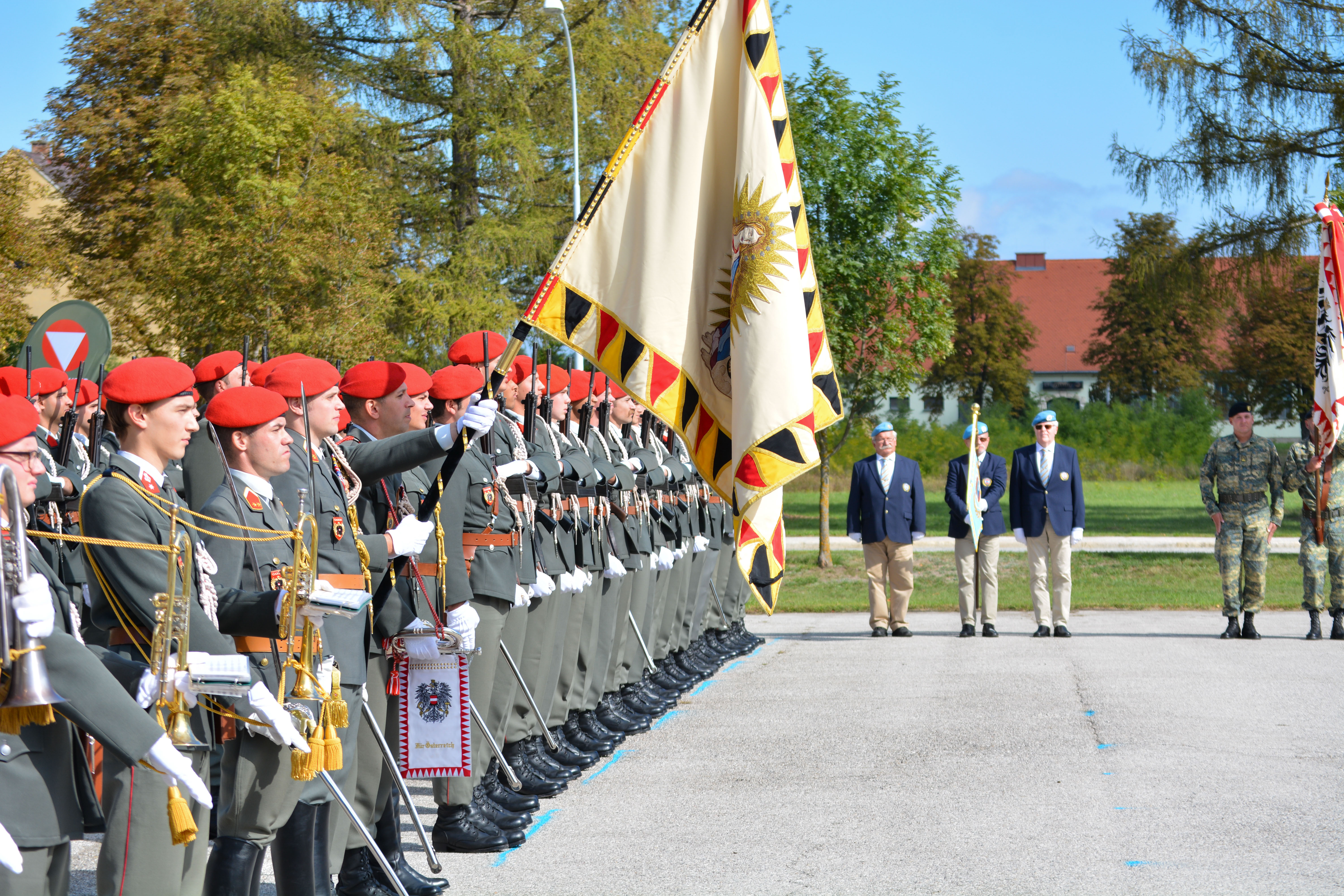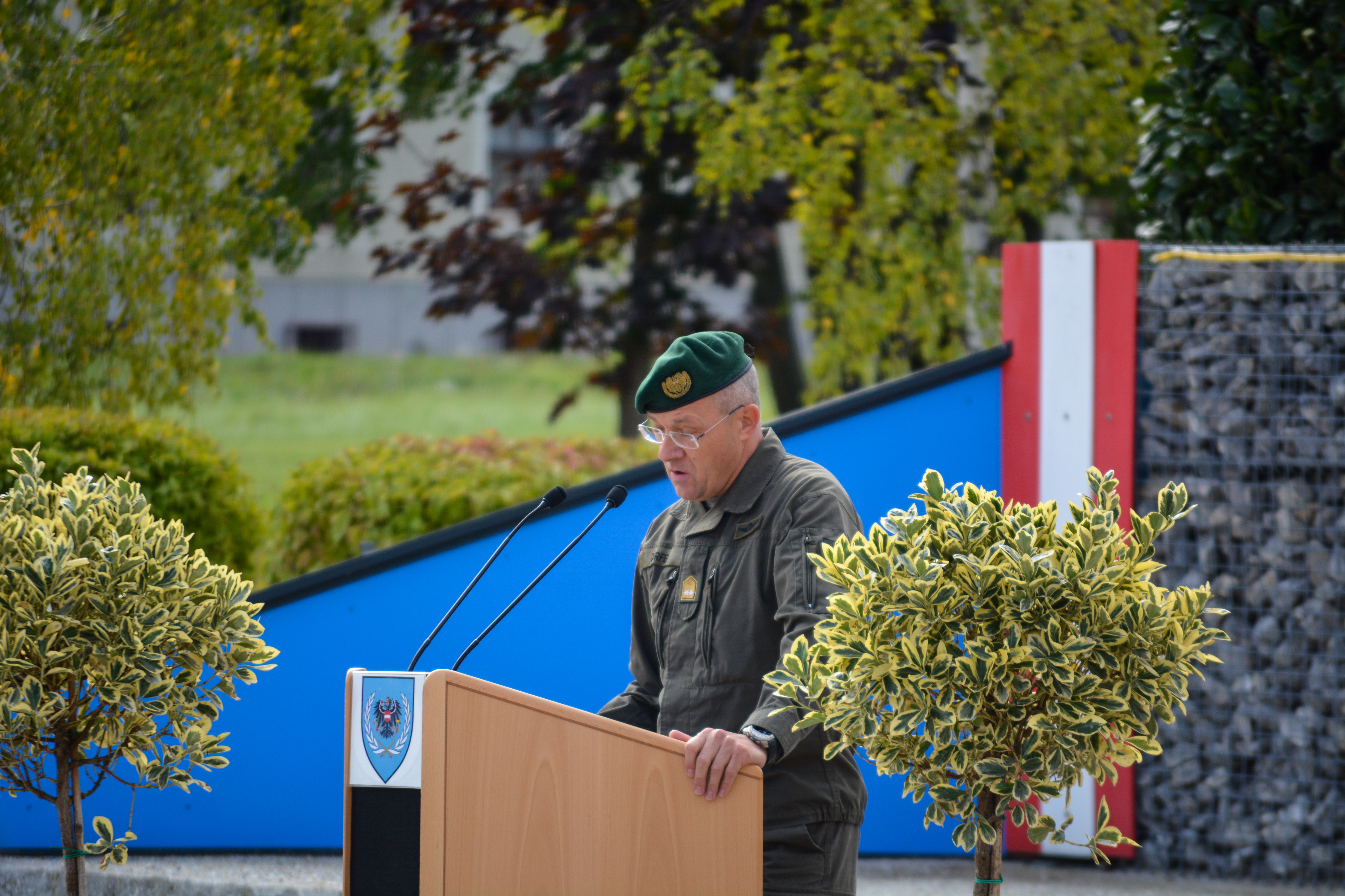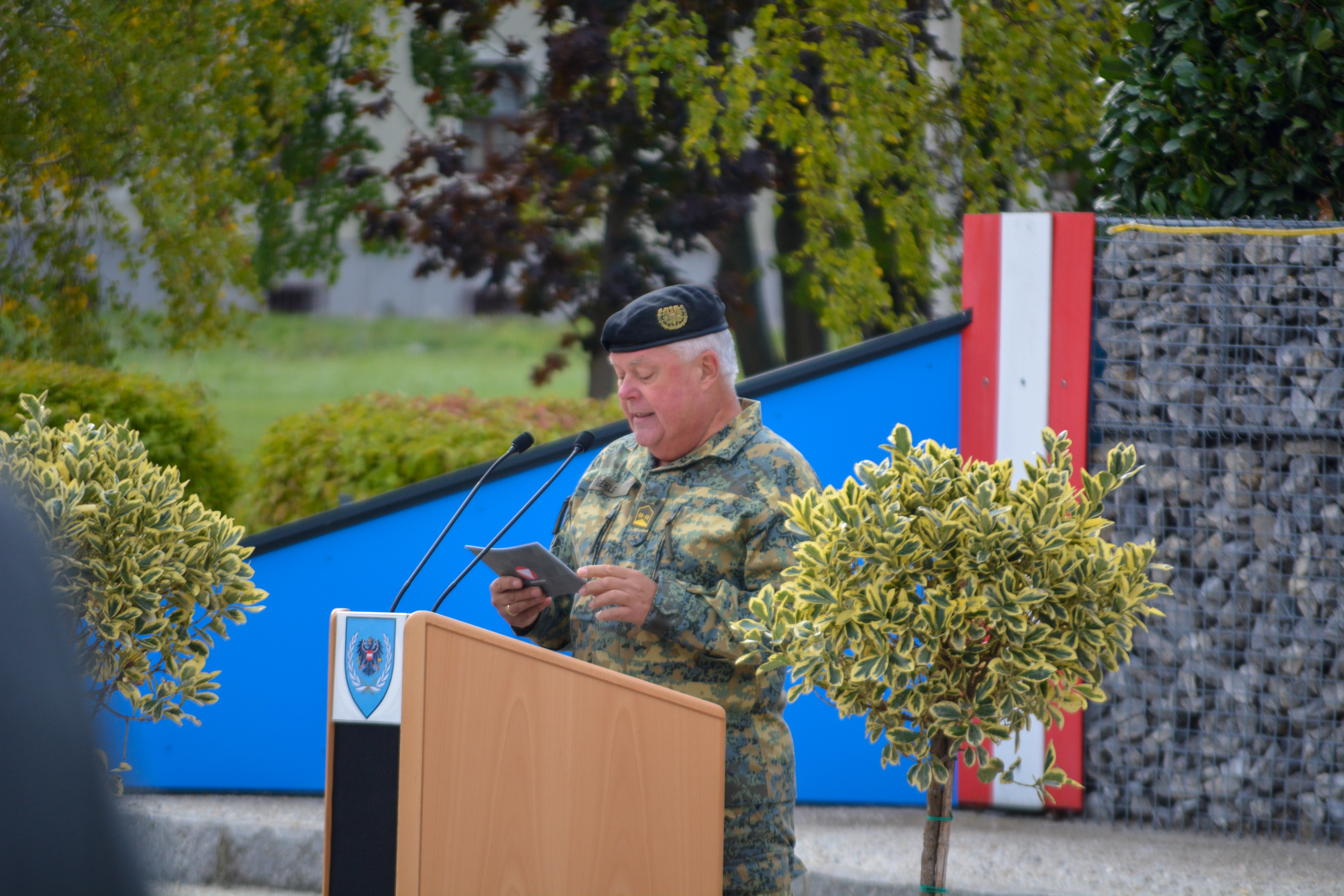 Als sichtbares Zeichen der Kommandoübernahme übergab am Donnerstag, den 22. September 2022 in der Wallenstein Kaserne in Götzendorf, Generalmajor Martin Dorfer, Leiter der Direktion 1 – Einsatz, bei einem militärischen Festakt die Insignie der Auslandseinsatzbasis von Oberst Claus Amon an Oberst des Generalstabsdienstes Christian Tesar. Neben Verteidigungsministerin Klaudia Tanner nahmen zahlreiche weitere Fest- und Ehrengäste an der Veranstaltung teil. Die 3. Gardekompanie stellte die Ehrenkompanie gemeinsam mit der Gardemusik Wien.
