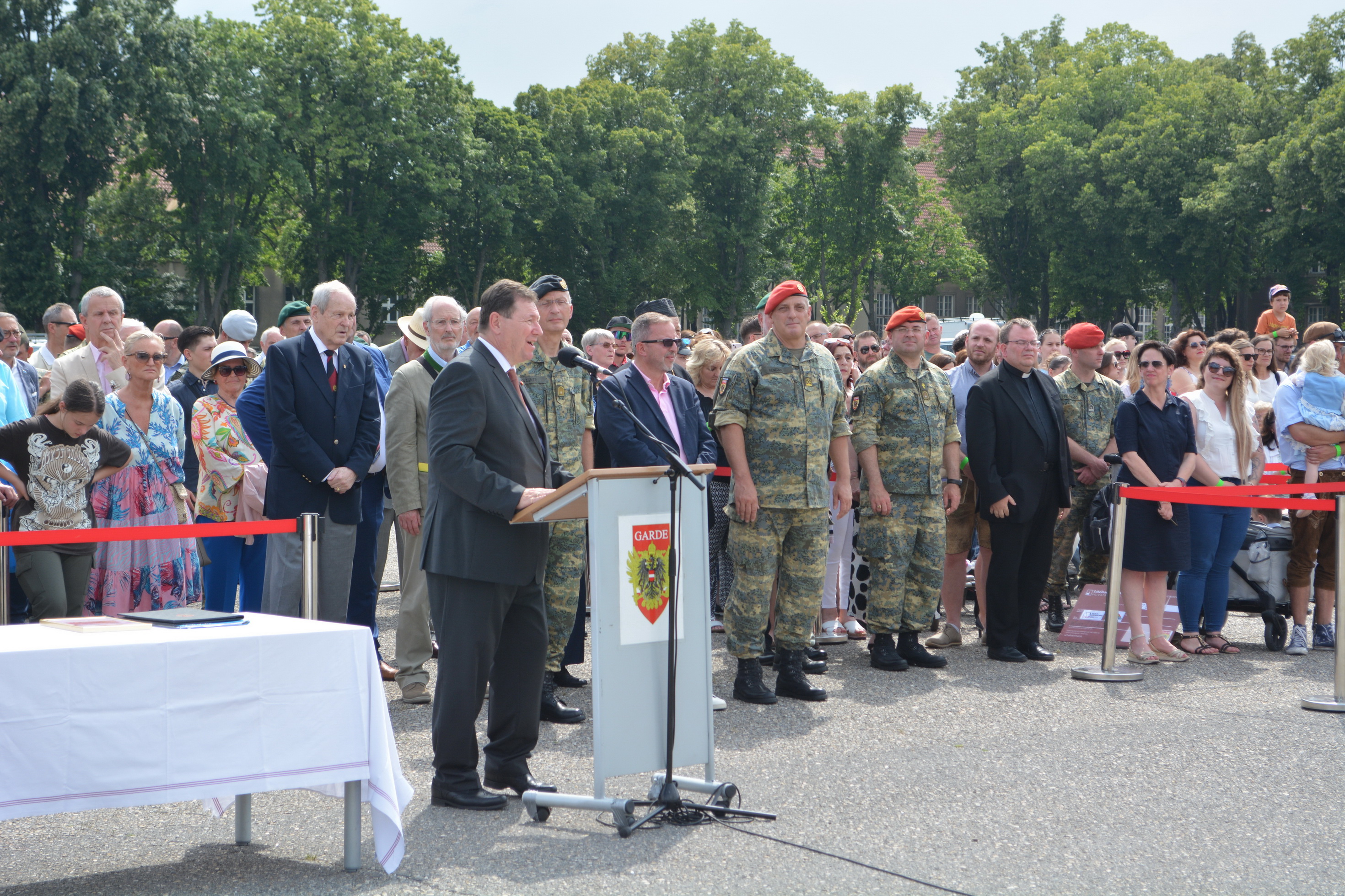 Die Soldaten der Garde feierten ihren Traditionstag sowie die Angelobung von 220 Soldaten. Als Zeichen der Wertschätzung besuchte der Militärkommandant von Wien Brigadier Kurt Wagner den Festakt in der Maria-Theresien-Kaserne und gratulierte recht herzlich.