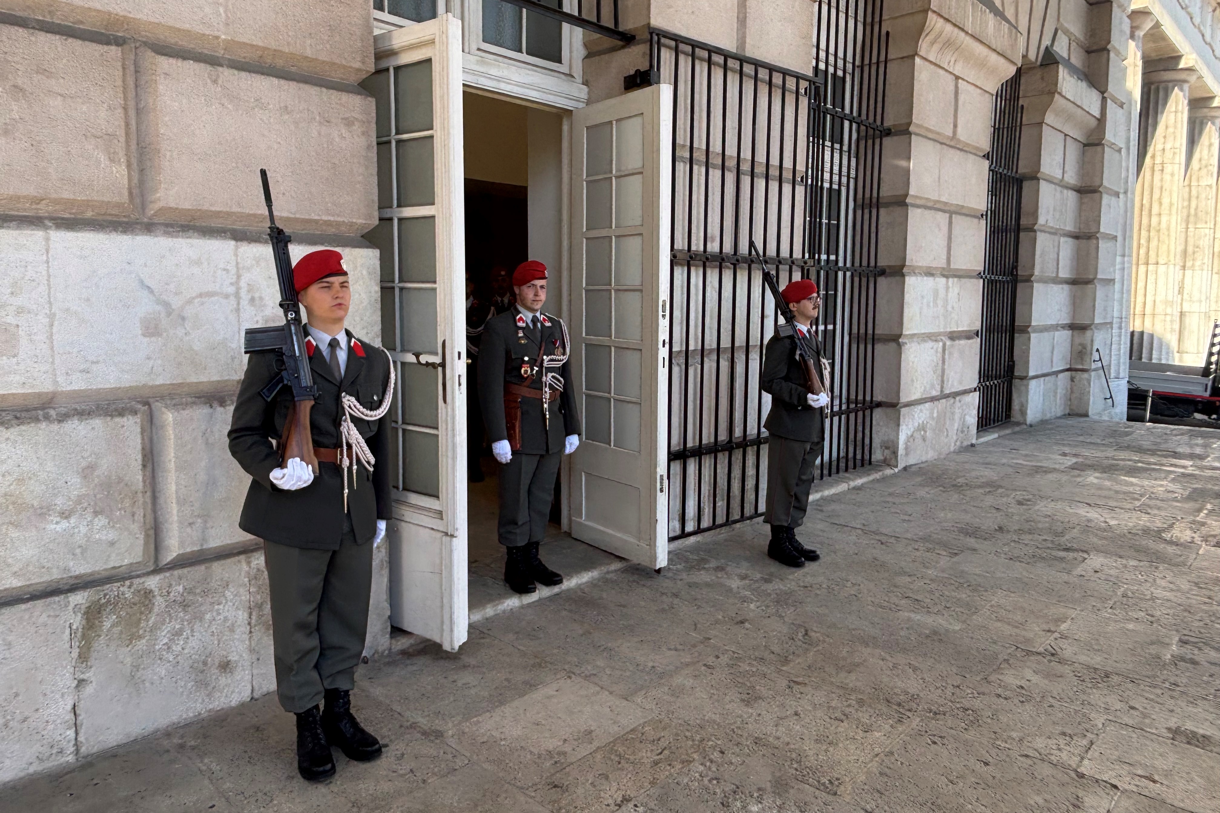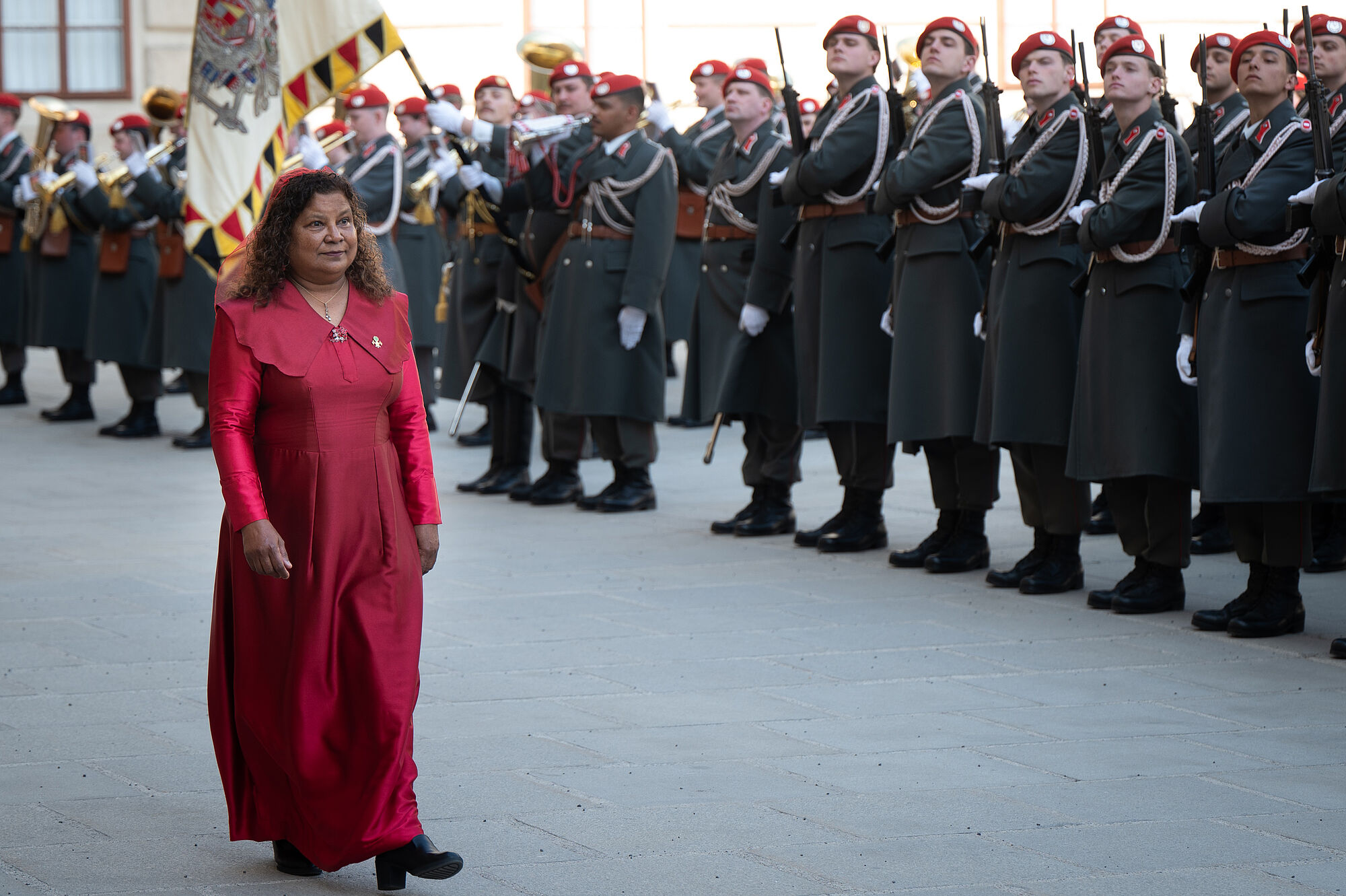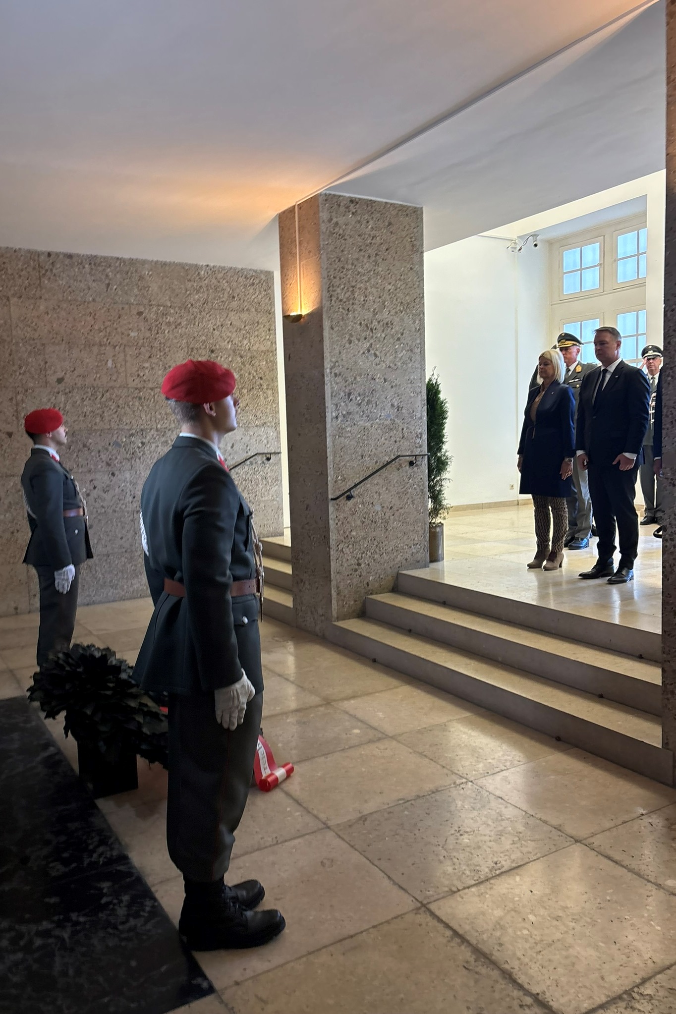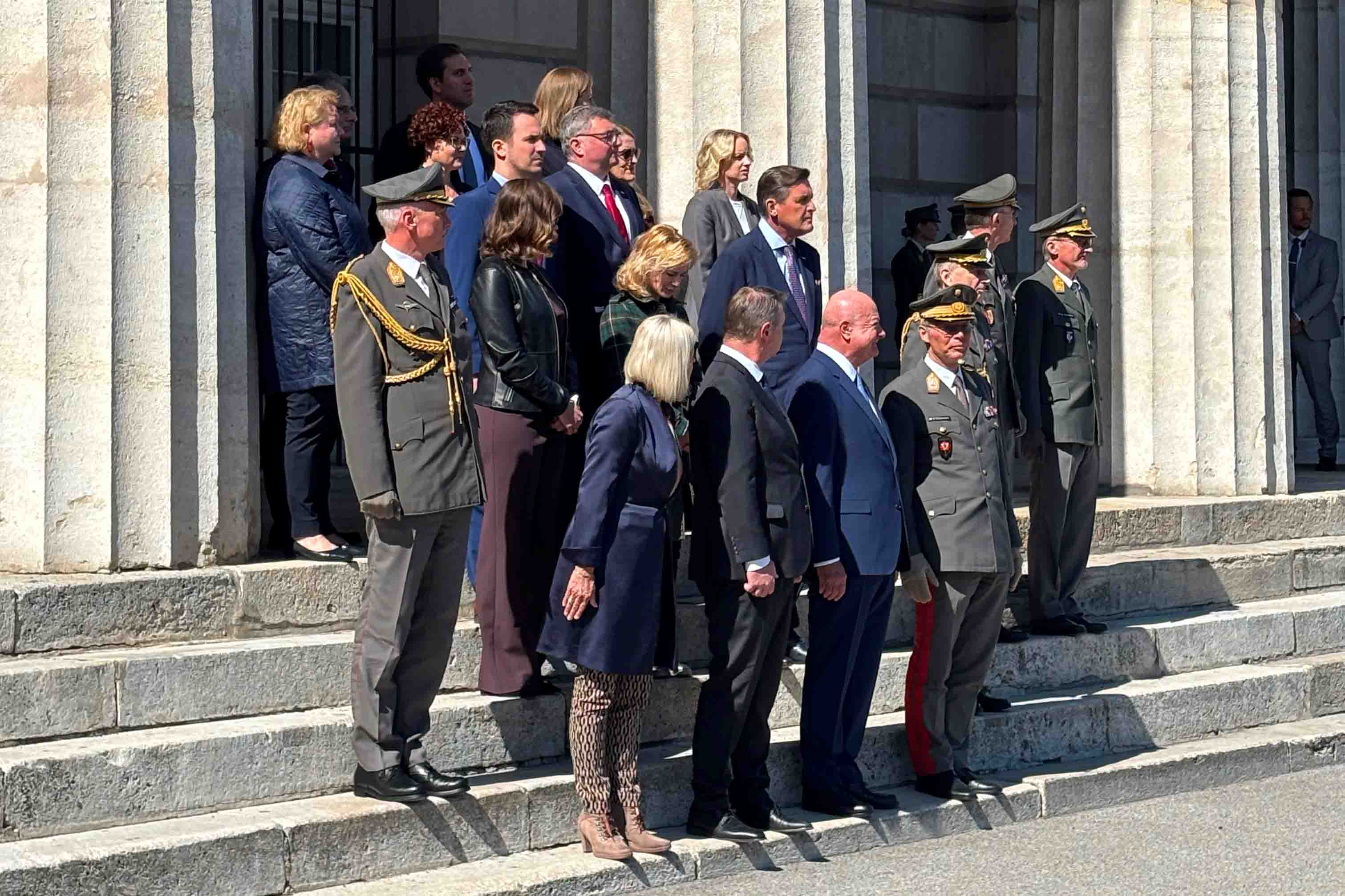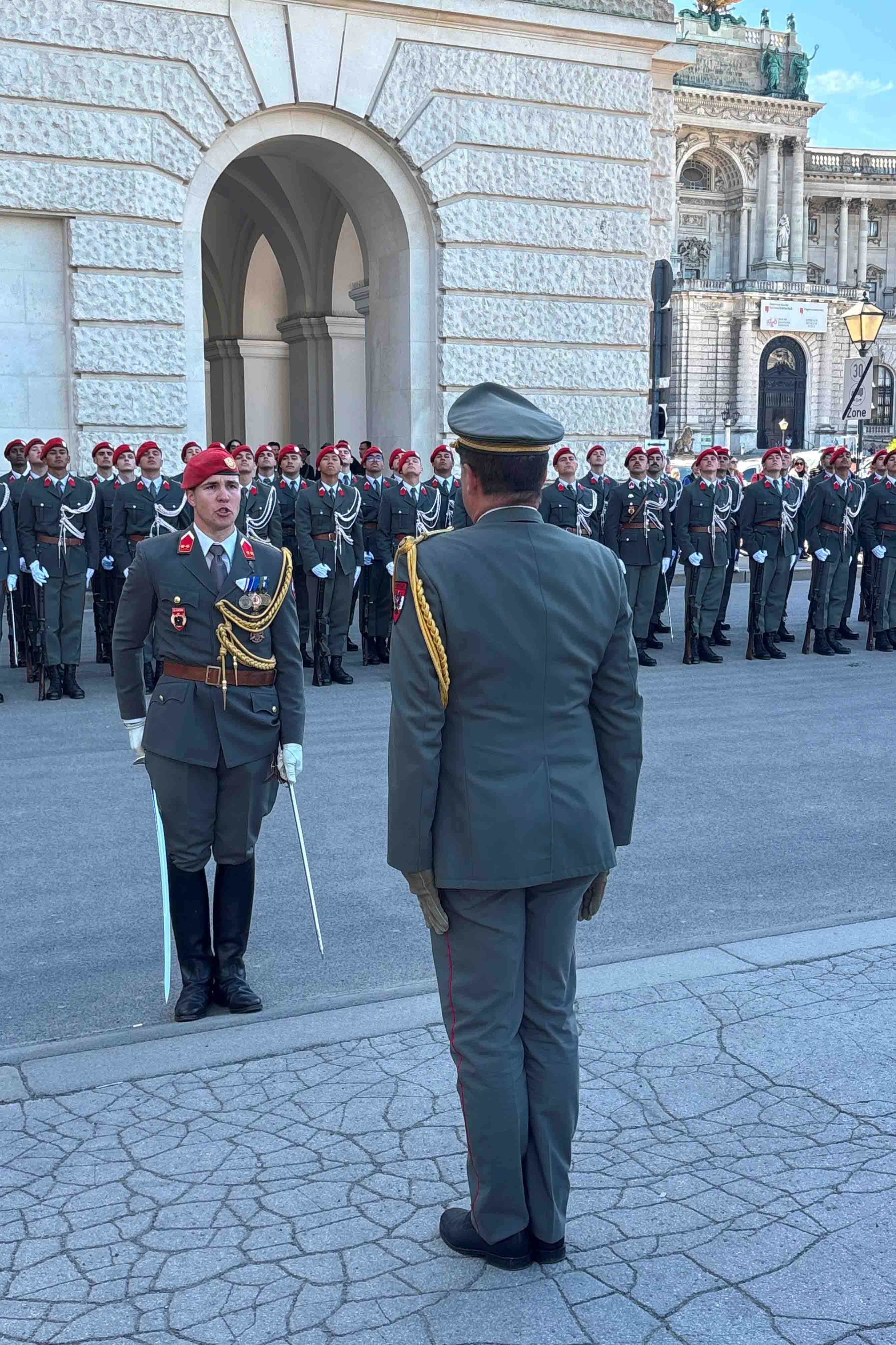 Der Empfang mit militärischen Ehren im „Inneren Burghof“ erfolgte durch die 2. Gardekompanie und der Gardemusik Wien.