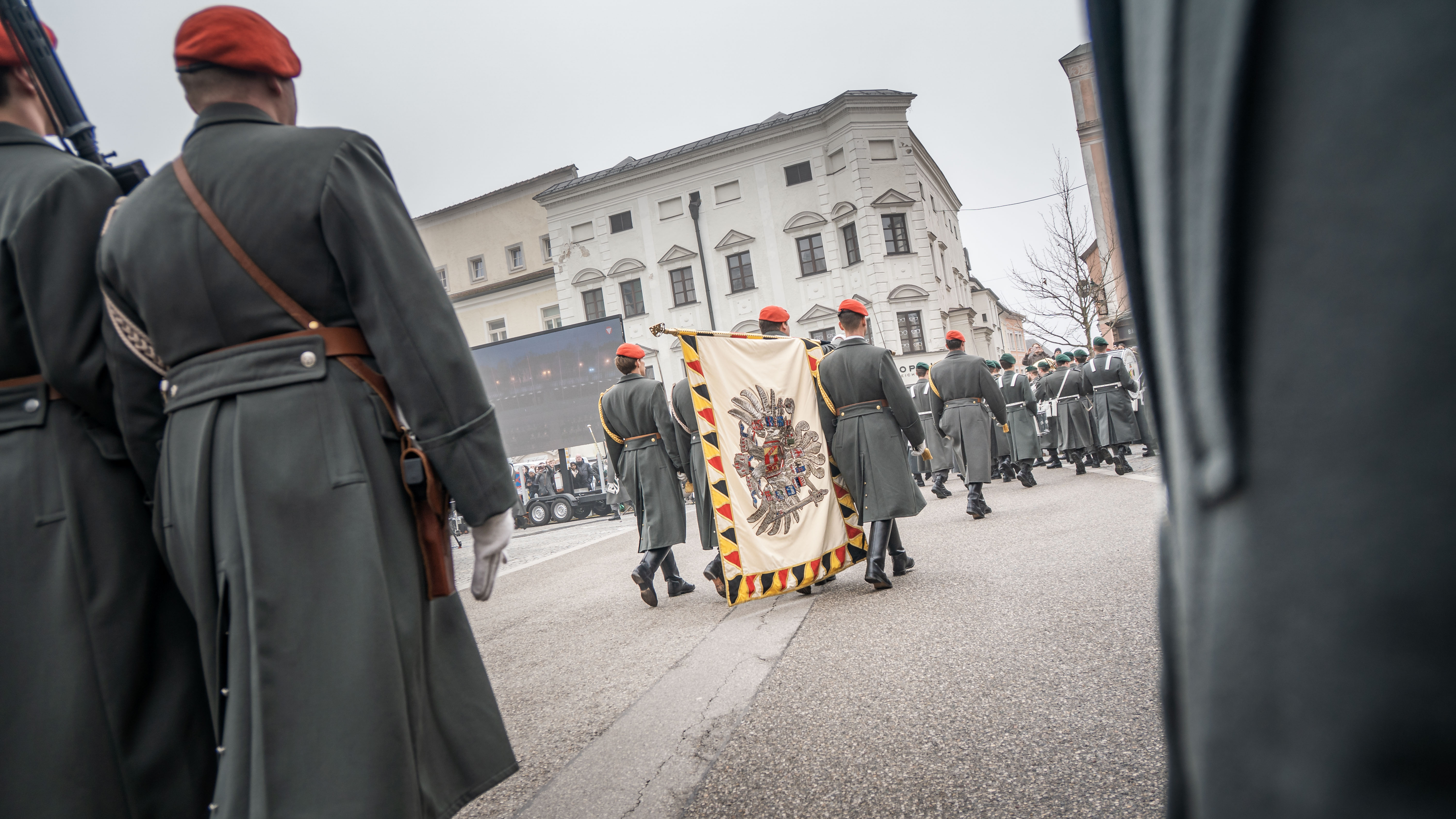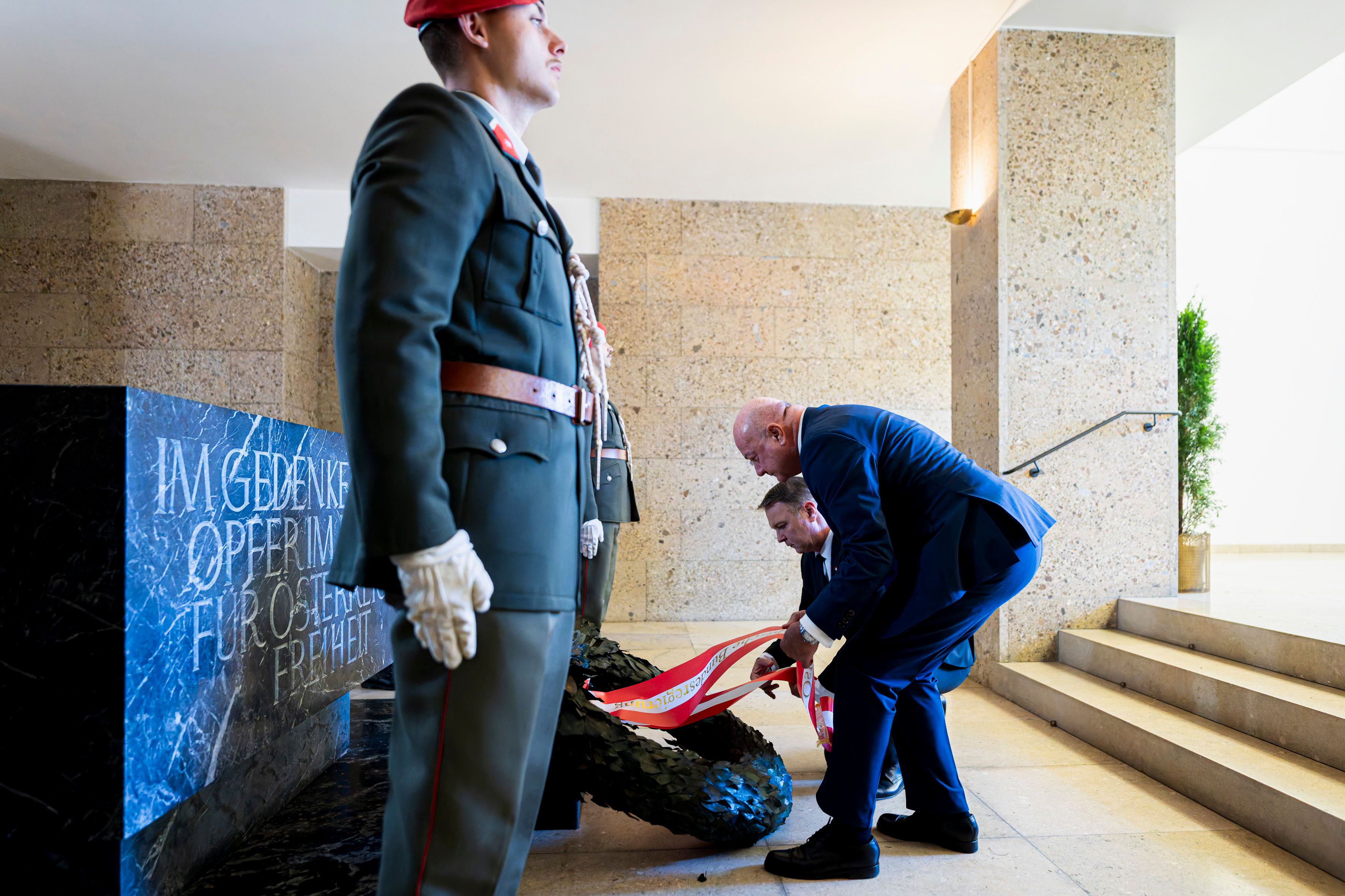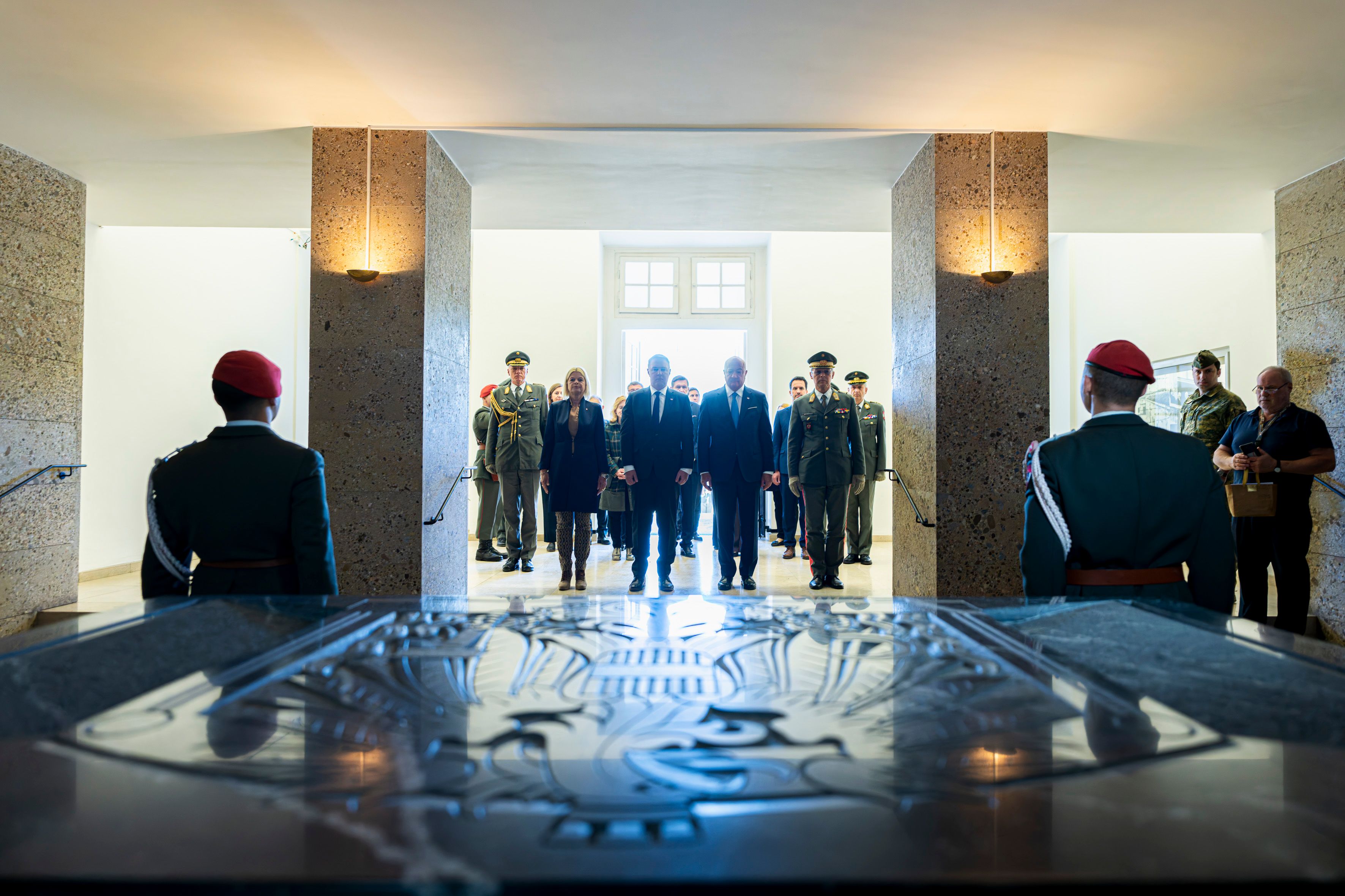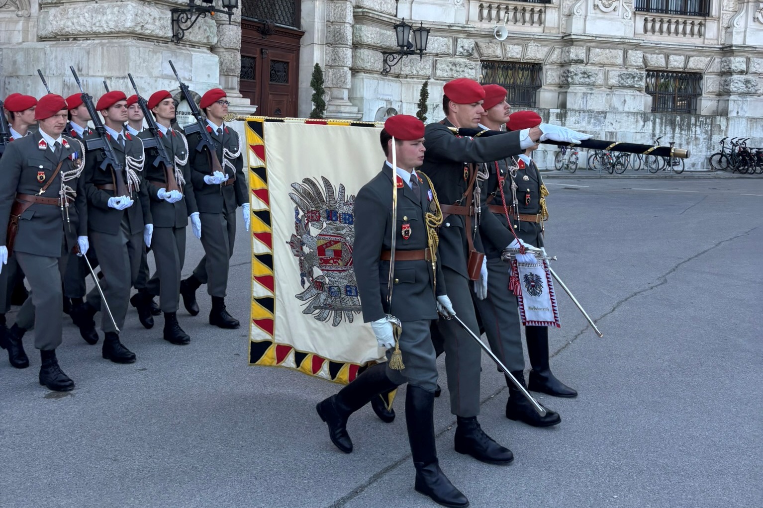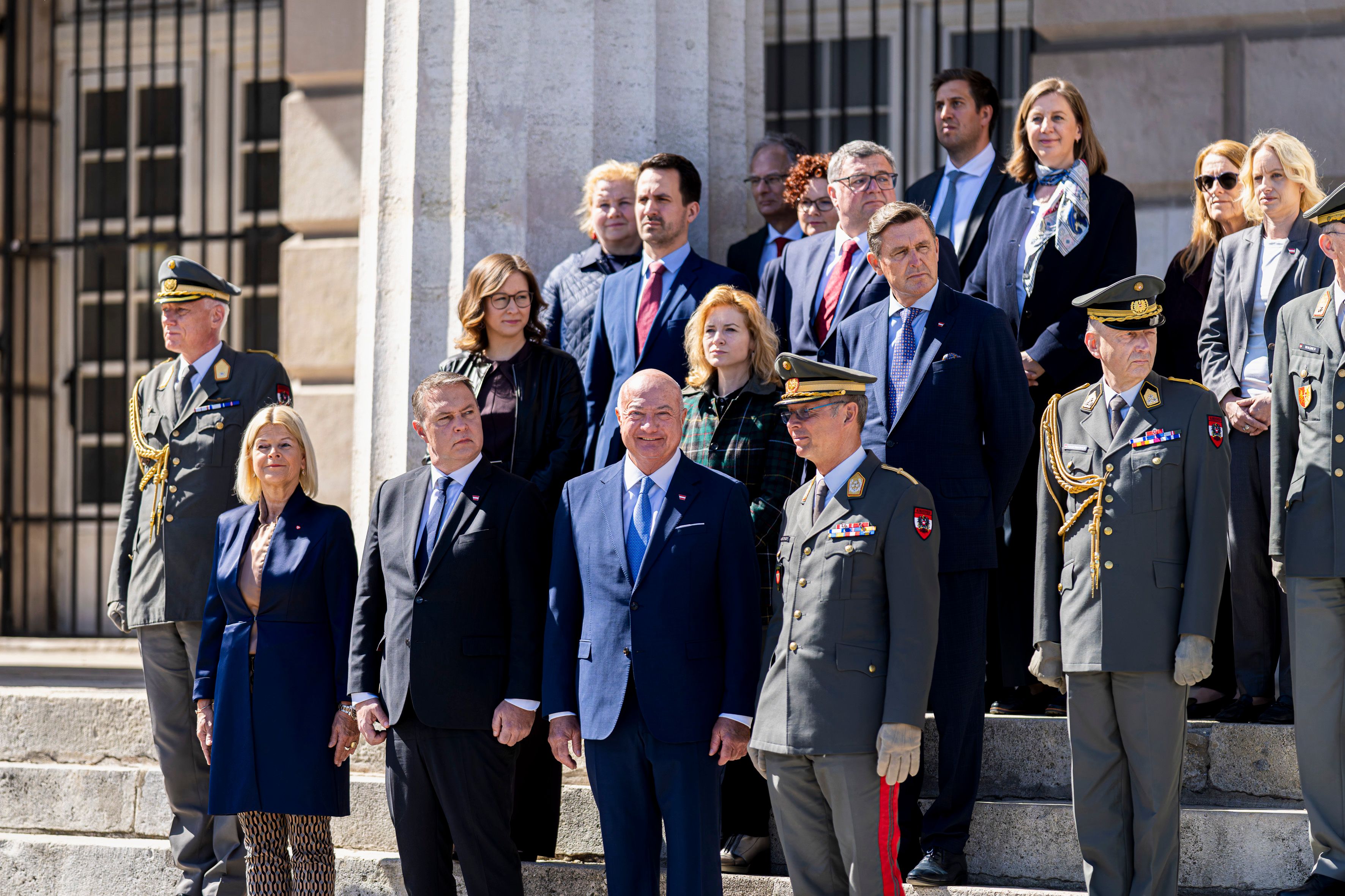Der Empfang mit militärischen Ehren im „Inneren Burghof“ erfolgte durch die 2. Gardekompanie und der Gardemusik Wien.