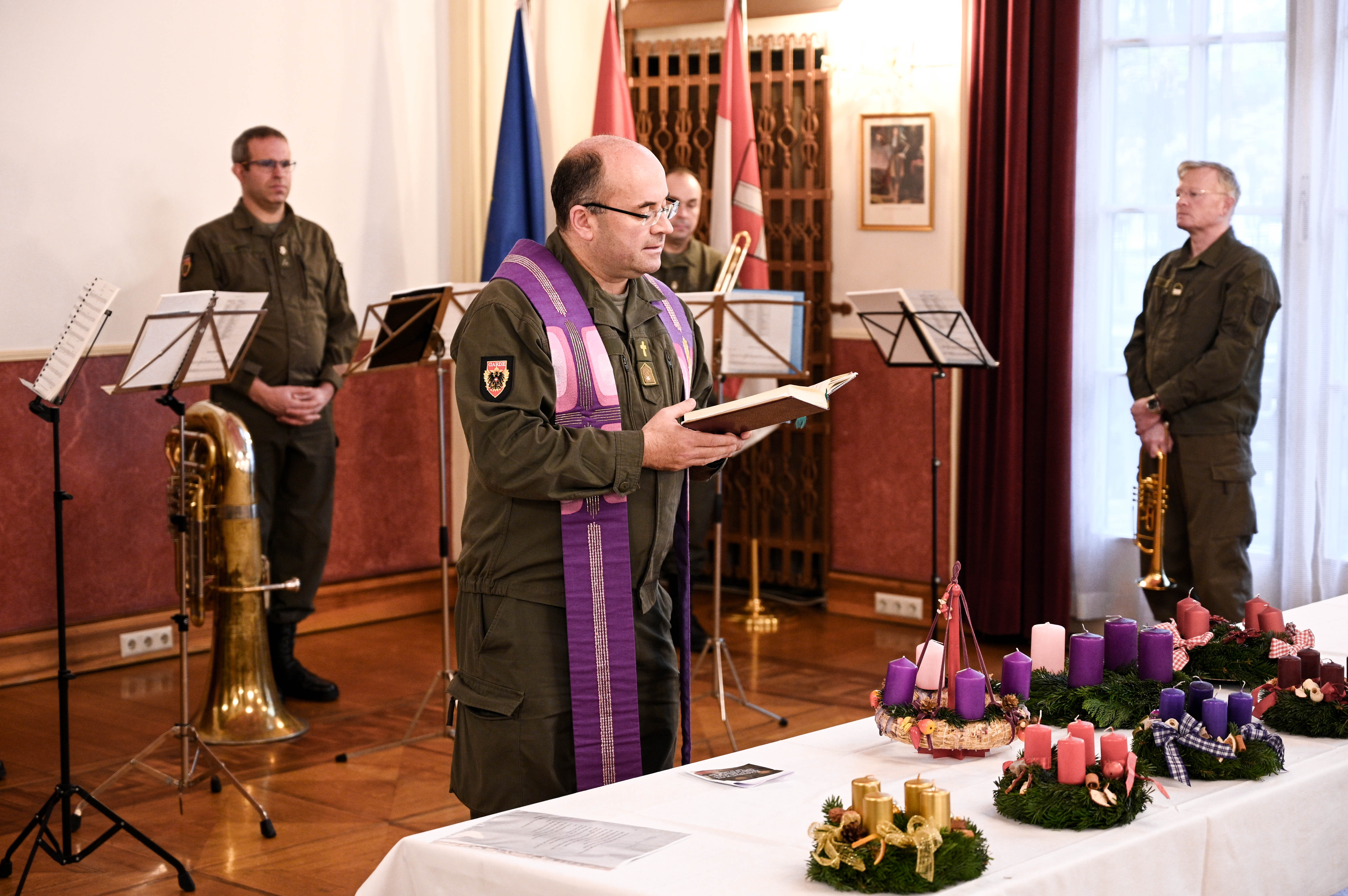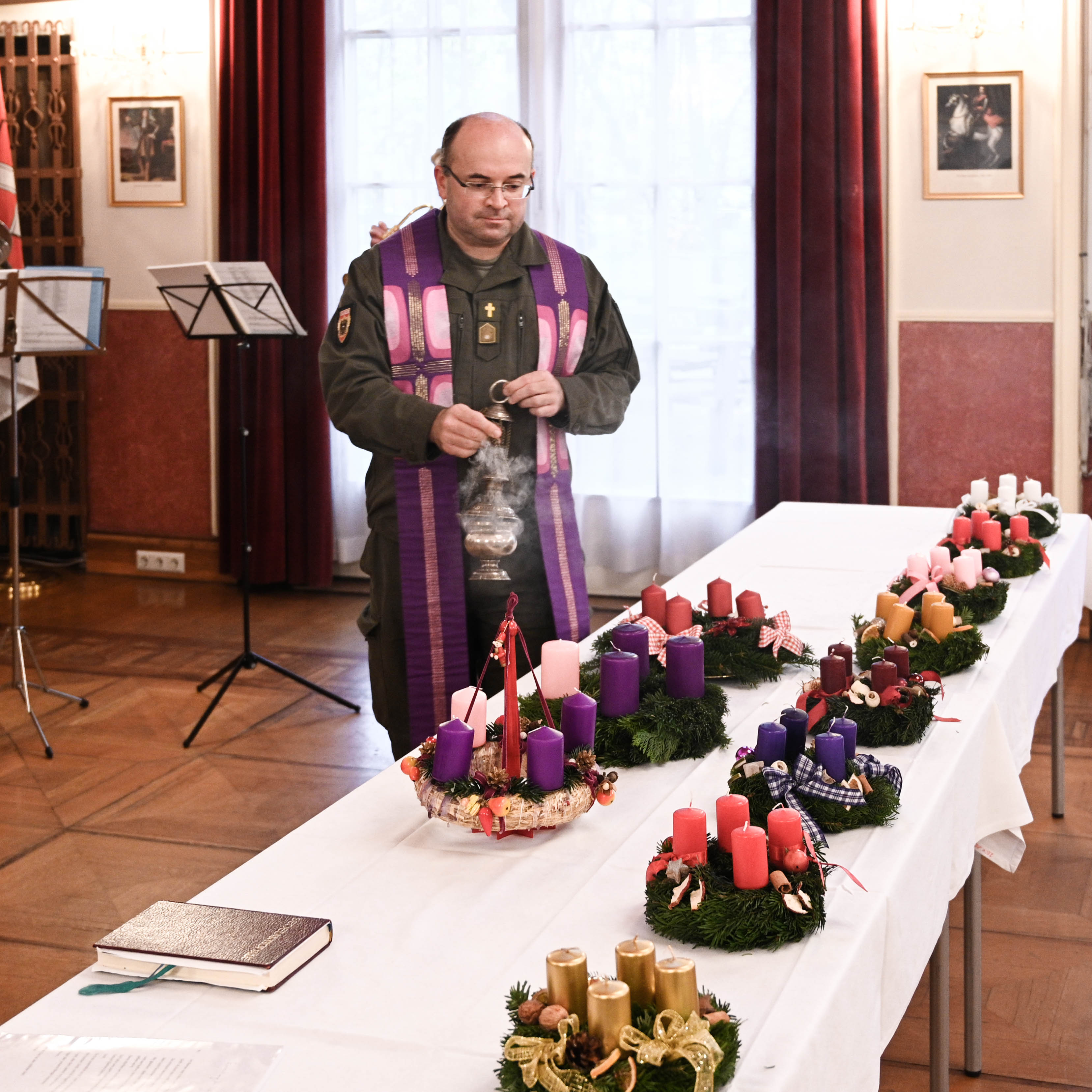 Im würdigen Rahmen fand im Garnisonskasino der Maria Theresien Kaserne die traditionelle Adventkranzweihe der Garde durch Militärerzdekan Dr. Harald Tripp statt.