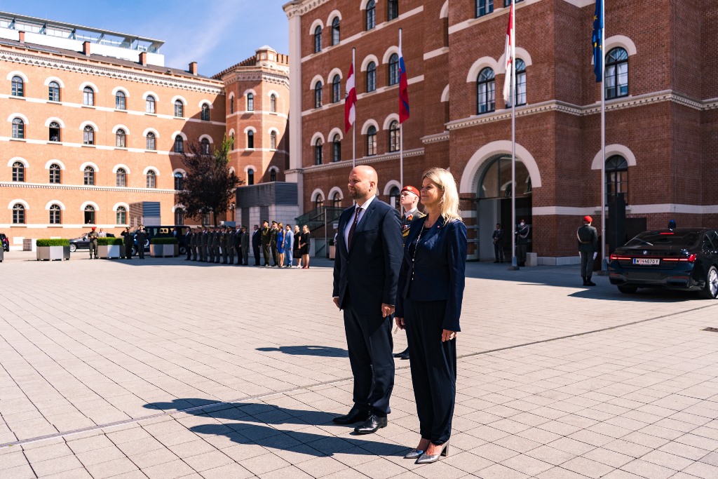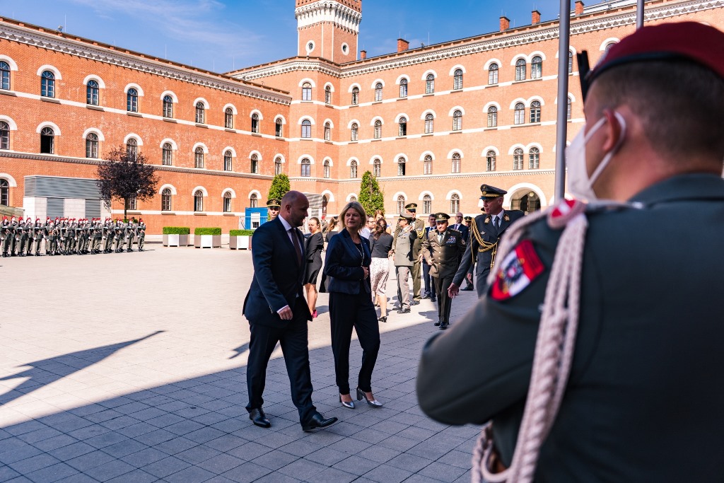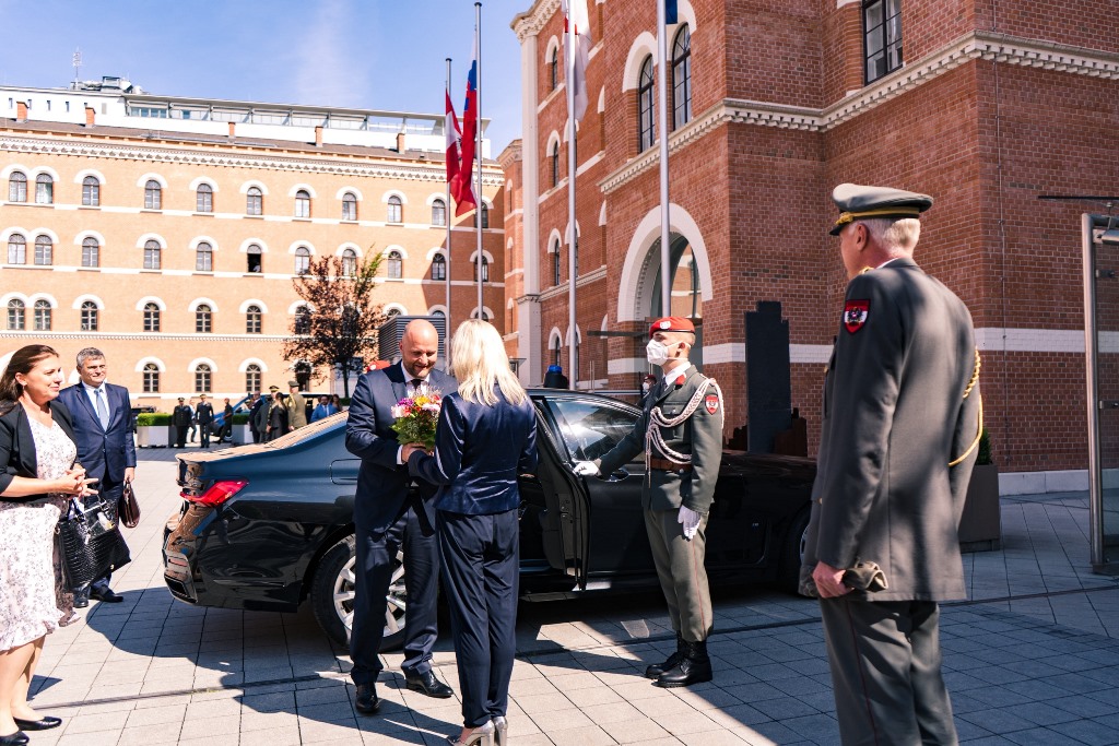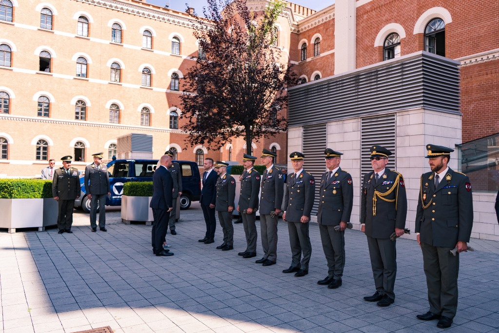 Verteidiungsministerin Klaudia Tanner empfing vergangenen Freitag seinen Amtskollegen aus der Slowakei, Jaroslav Nad mit militärischen Ehren im Carl-Szokoll Hof der AG Rossau. Dabei verlieh der slowakische Verteidigungsminister die slowakische Einsatzmedaille an über 30 Soldatinnen und Soldaten. Diese unterstützten die slowakischen Streitkräfte bei den Covid-19-Massentestungen.