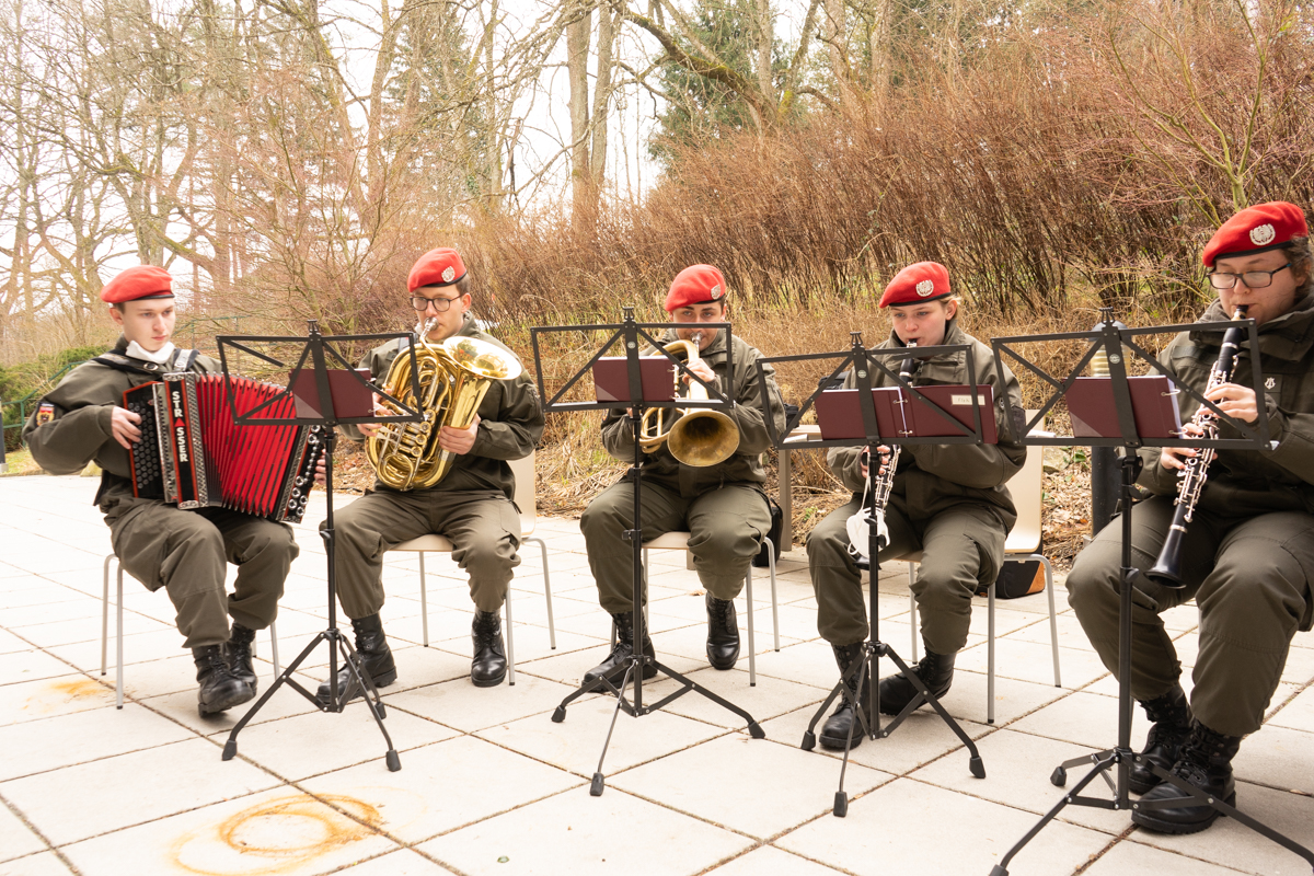Ja, Sie haben richtig gelesen. Die Gardemusik hat am Mittwoch dem SeneCura Seniorenheim in Preßbaum einen Besuch abgestattet. Coronabedingt spielte das Orchester im Freien, während das geschätzte Publikum im Wintergarten verharrte. Dazu wurden ALLE Beteiligten einem COVID-Antigen-Schnelltest unterzogen. So konnten wir in dieser so schweren Zeit für gute Stimmung sorgen. Fortsetzung folgt!