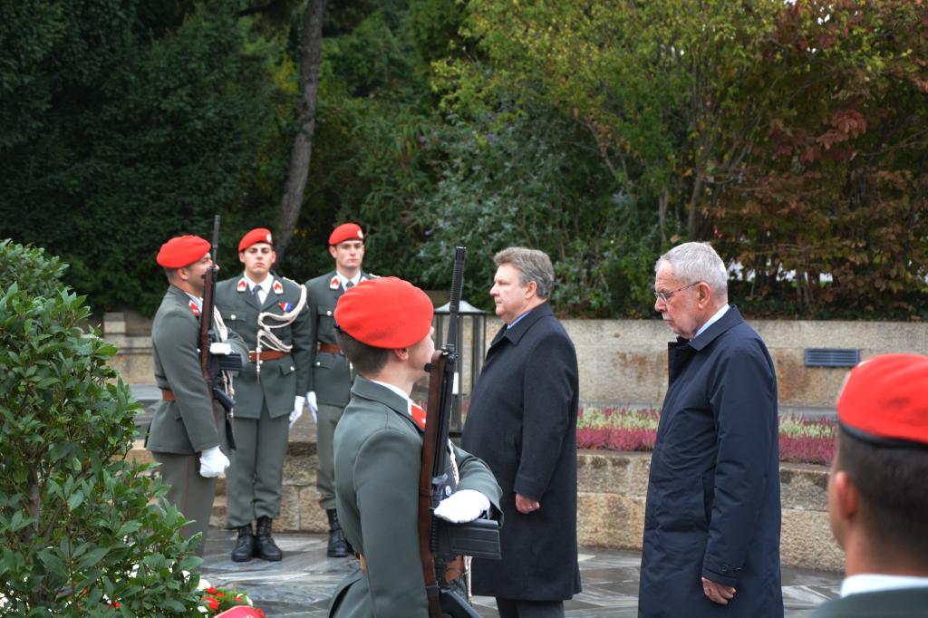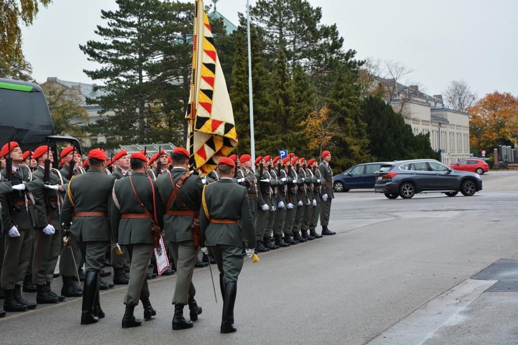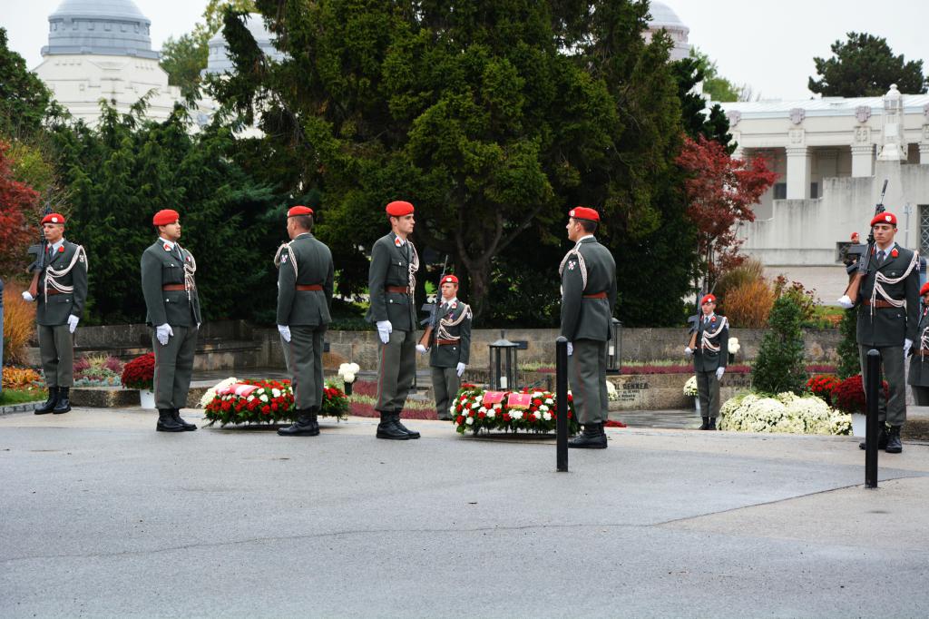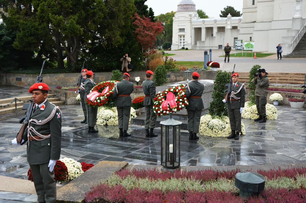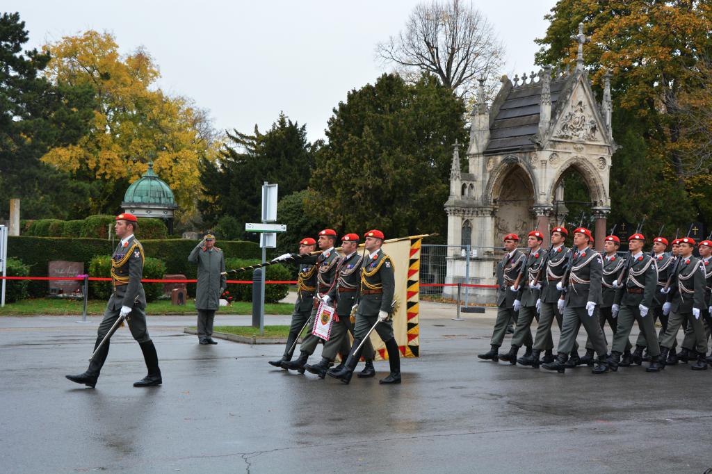 Um Novemberbeginn ist die Zeit des Totengedenkens. Aus diesem Grund rückt nun insbesondere die Garde vermehrt zu Kranzniederlegungen aus und stellt Ehrenposten. Heute fand die Kranzniederlegung des Herrn Bundespräsidenten Dr. Van der Bellen und des Wiener Bürgermeisters Dr. Ludwig bei der Päsidentengruft am Zentralfriedhof von Wien statt. (goe)