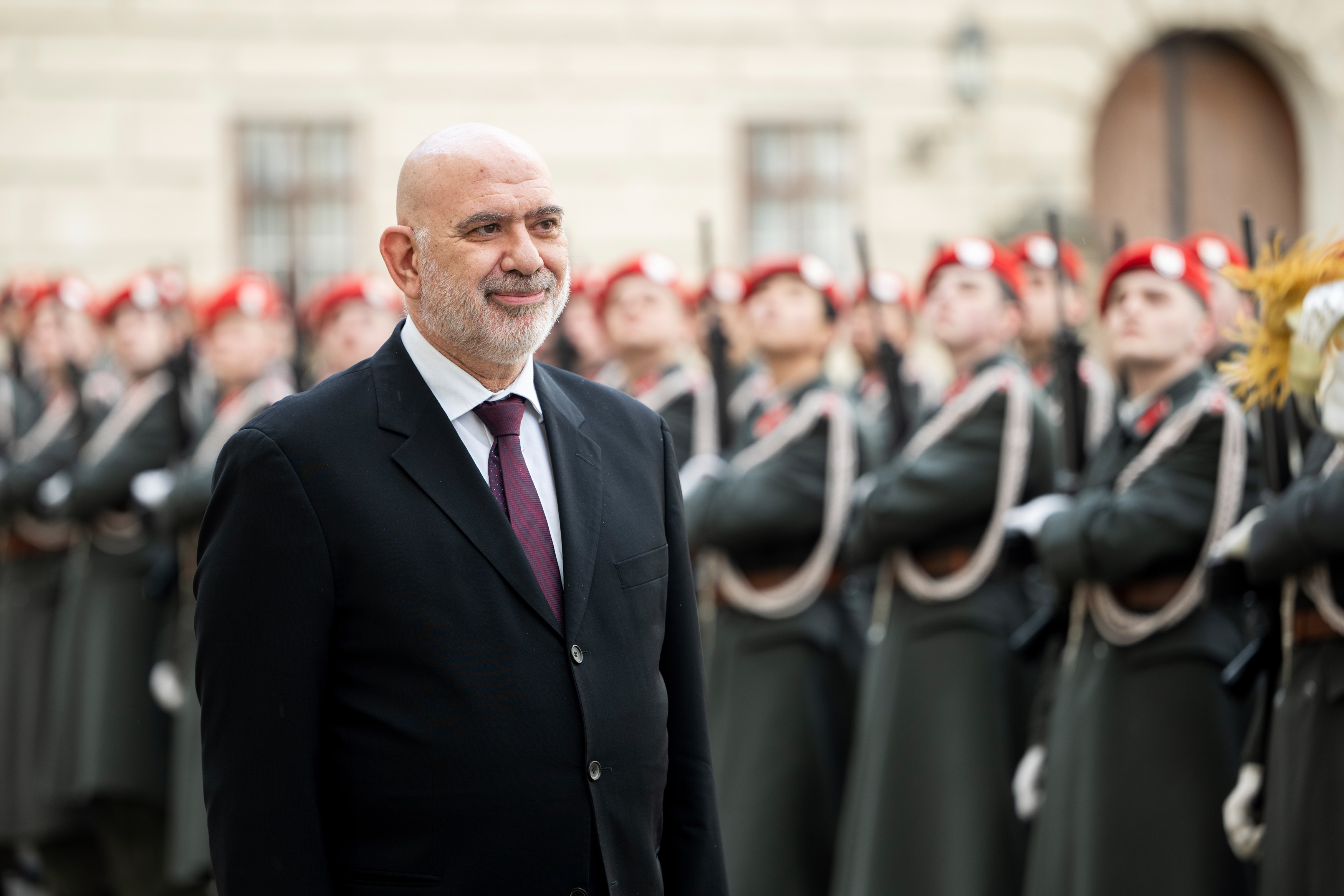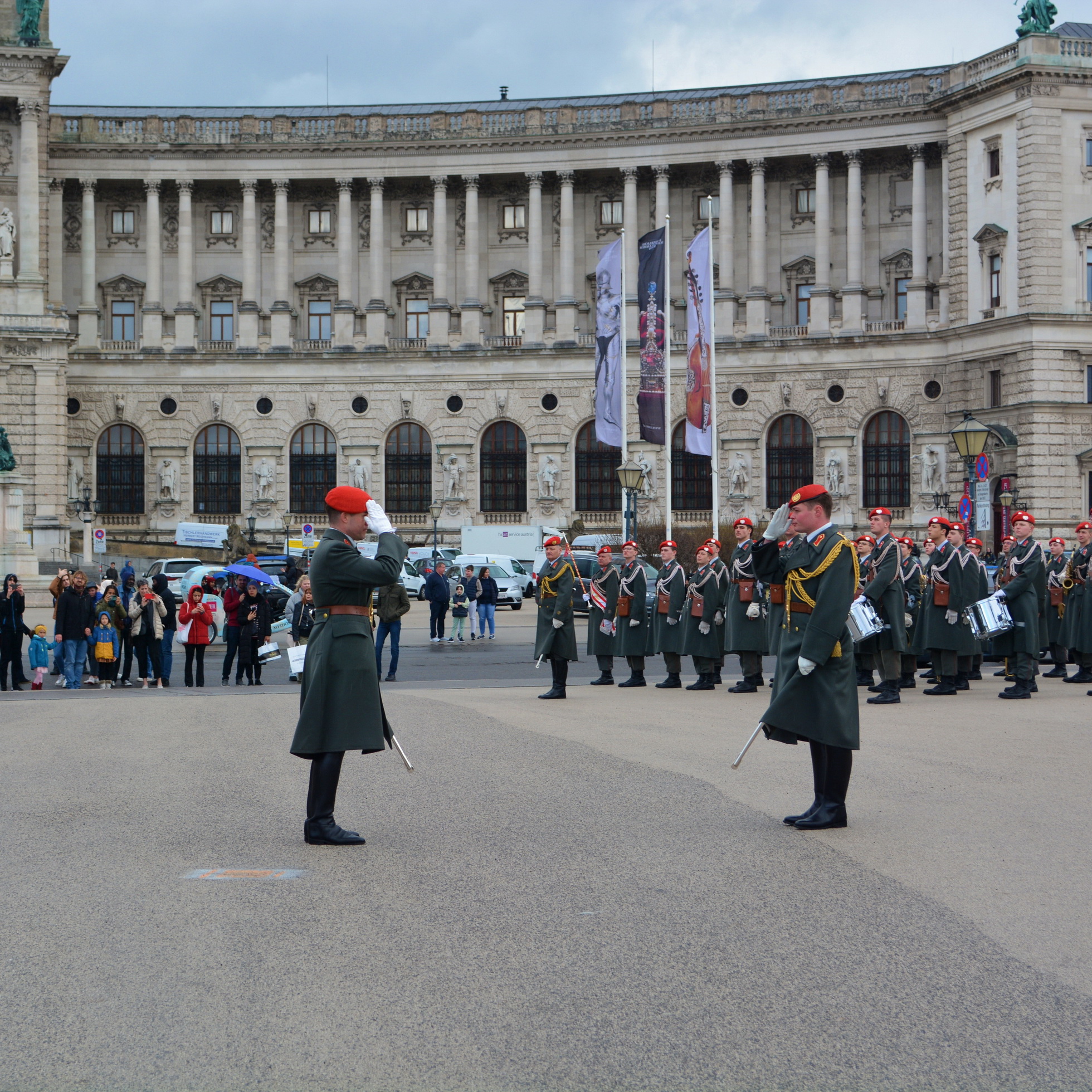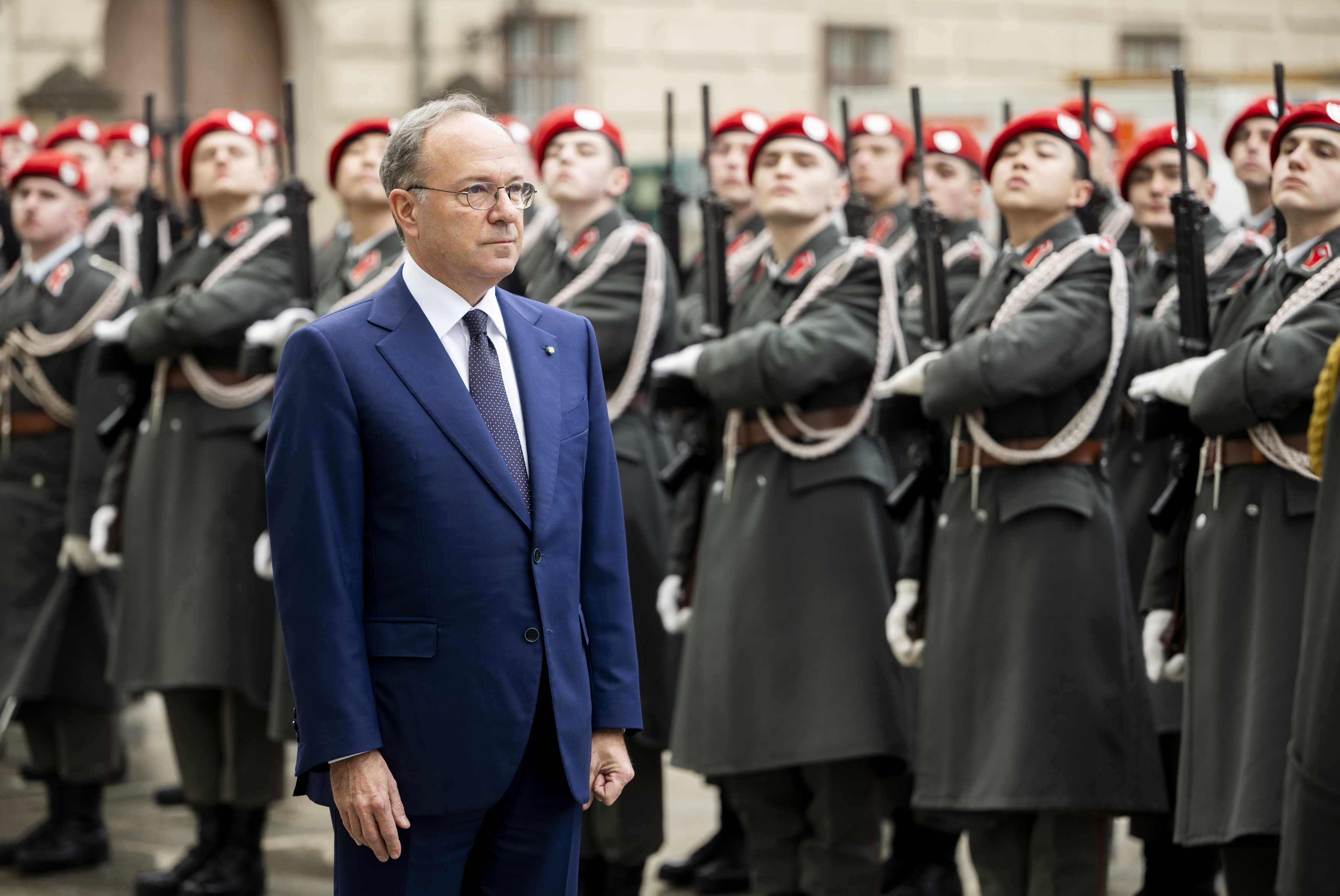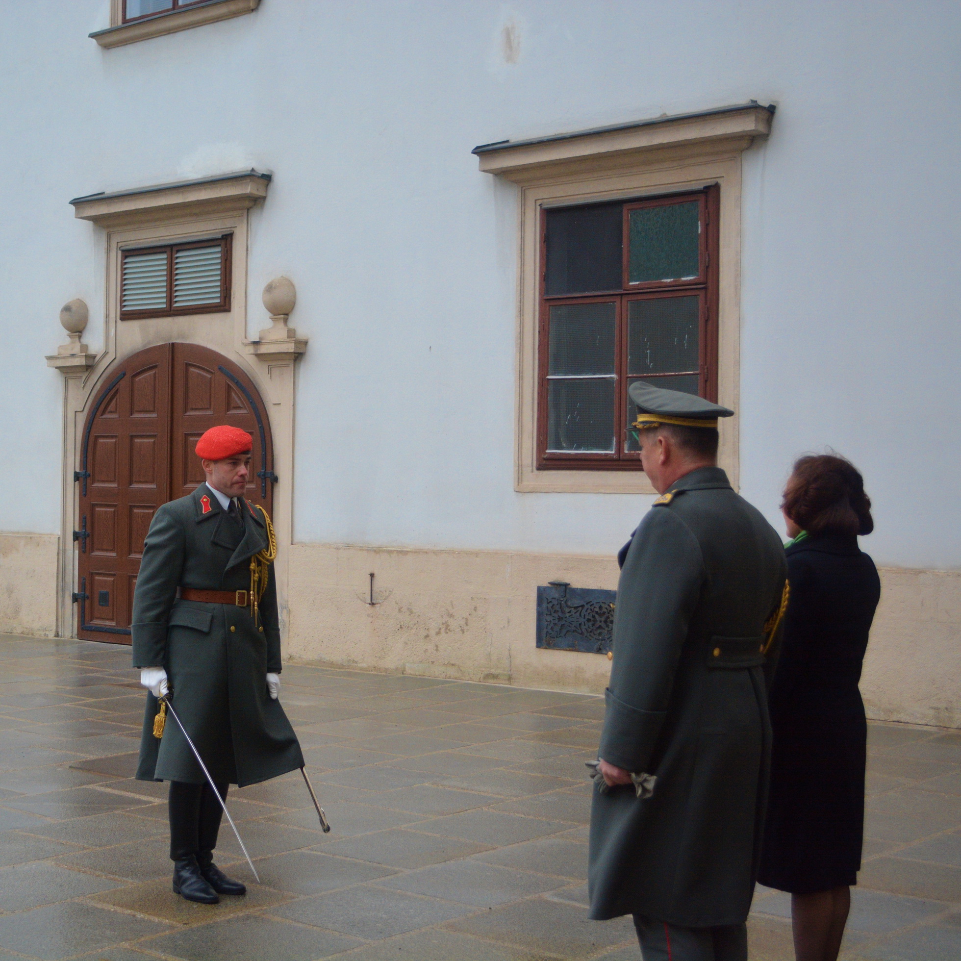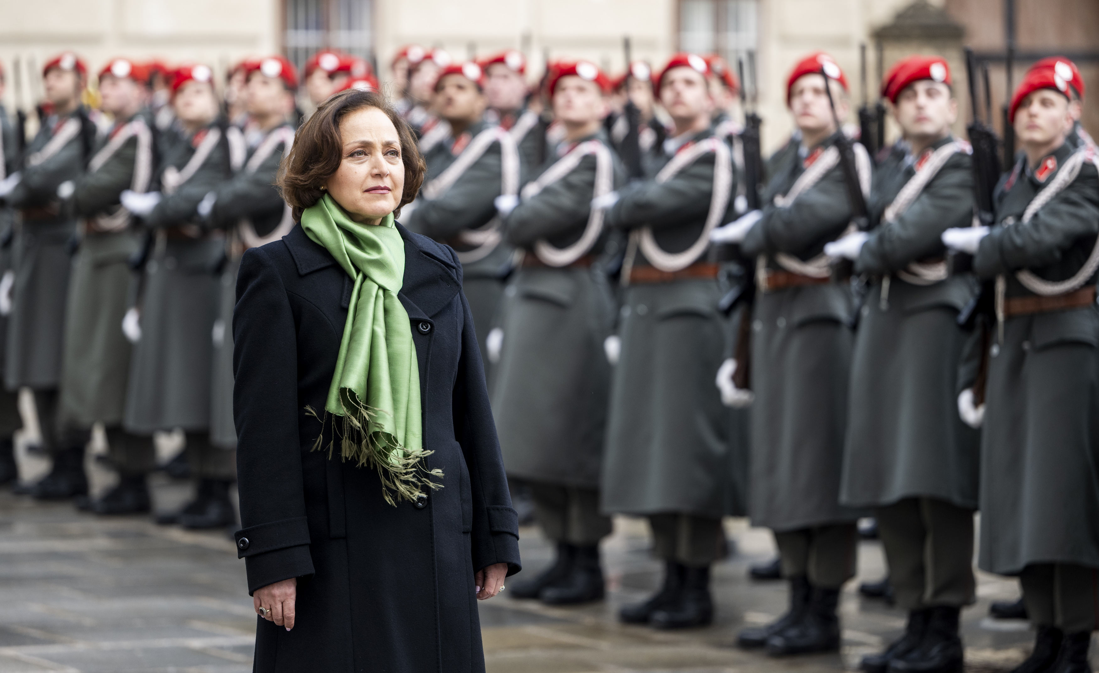 Der Empfang mit militärischen Ehren im „Inneren Burghof“ erfolgte durch die 3. Gardekompanie und der Gardemusik Wien.