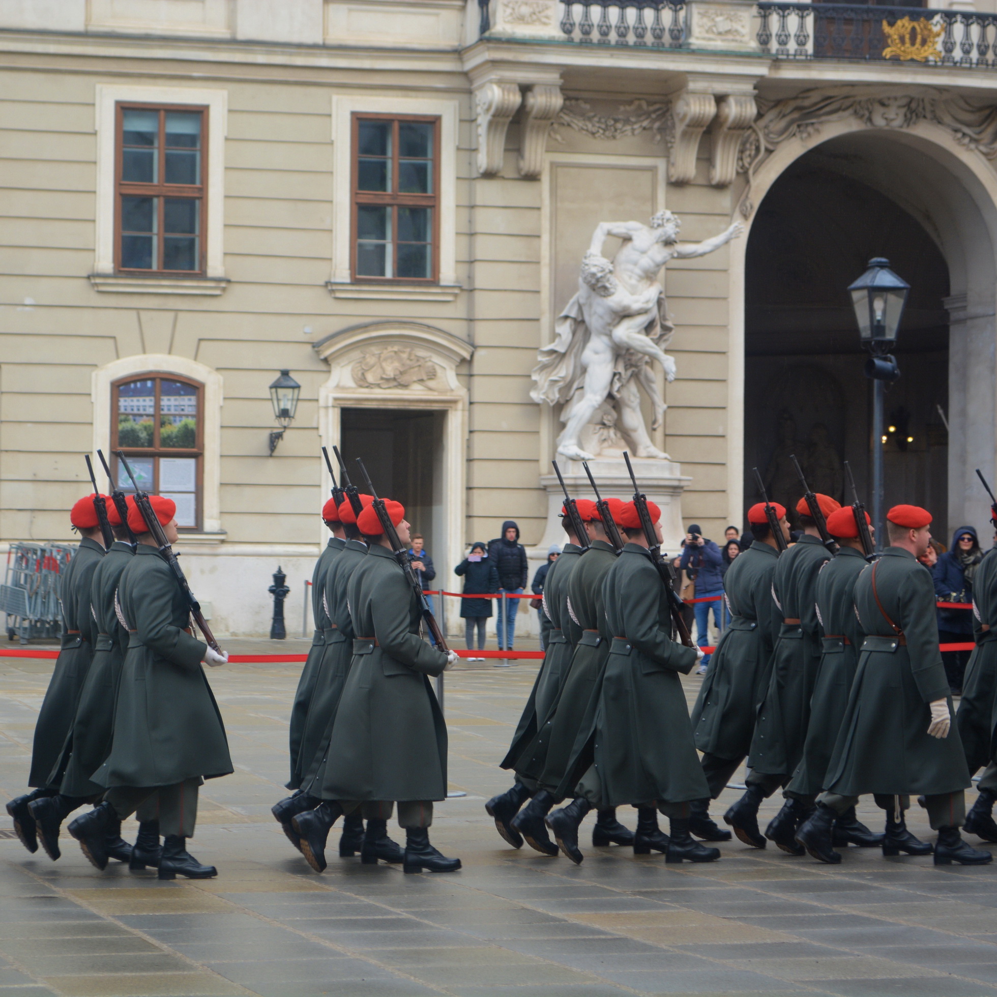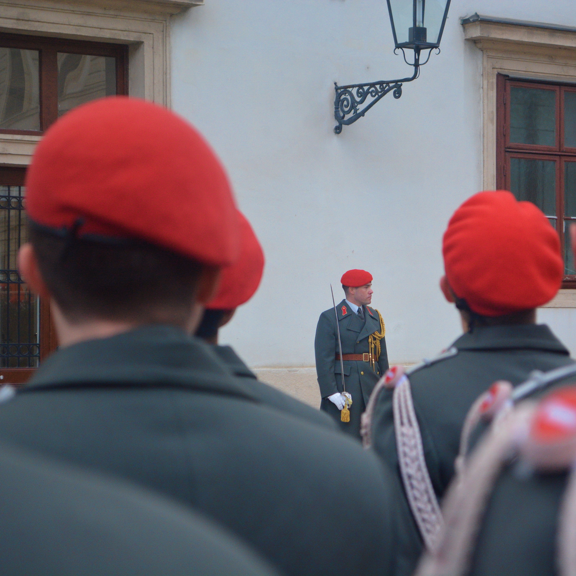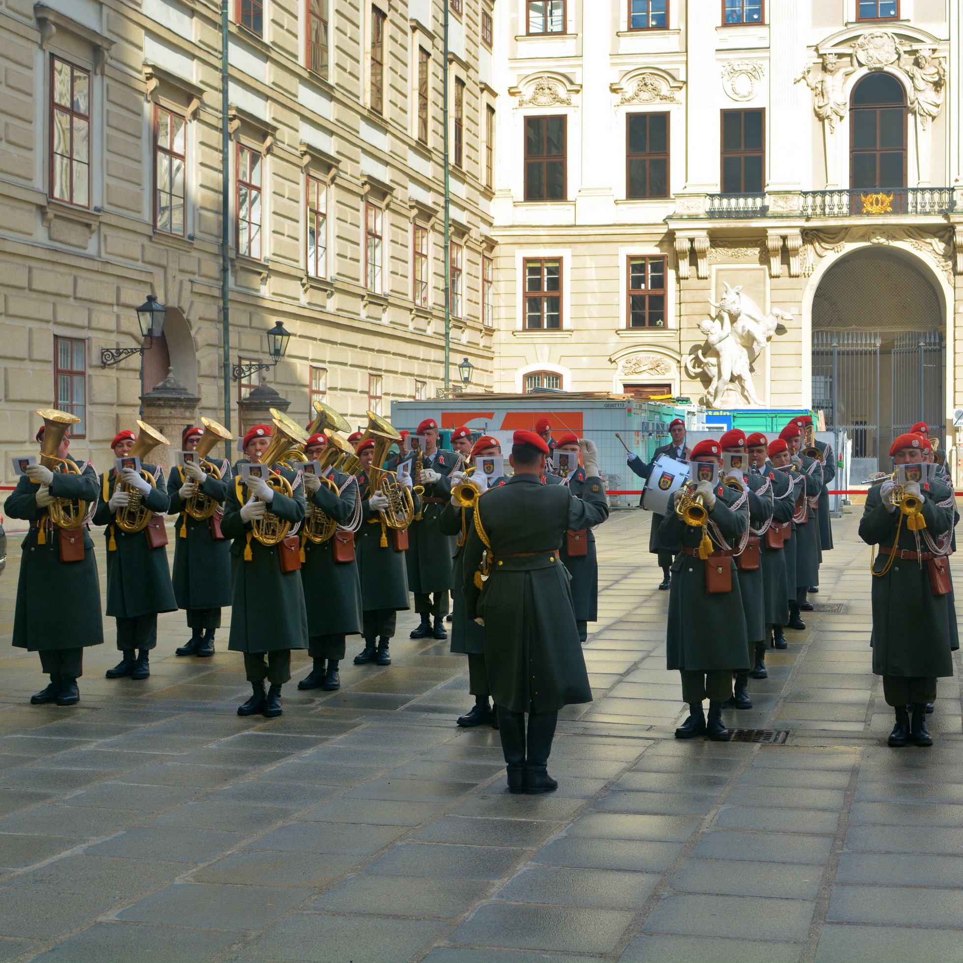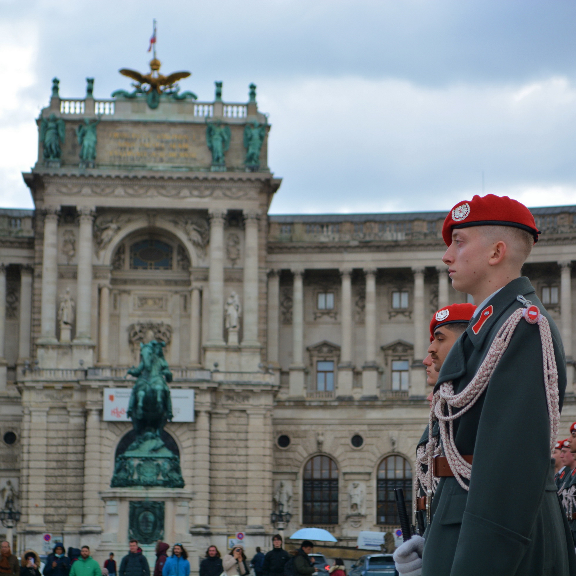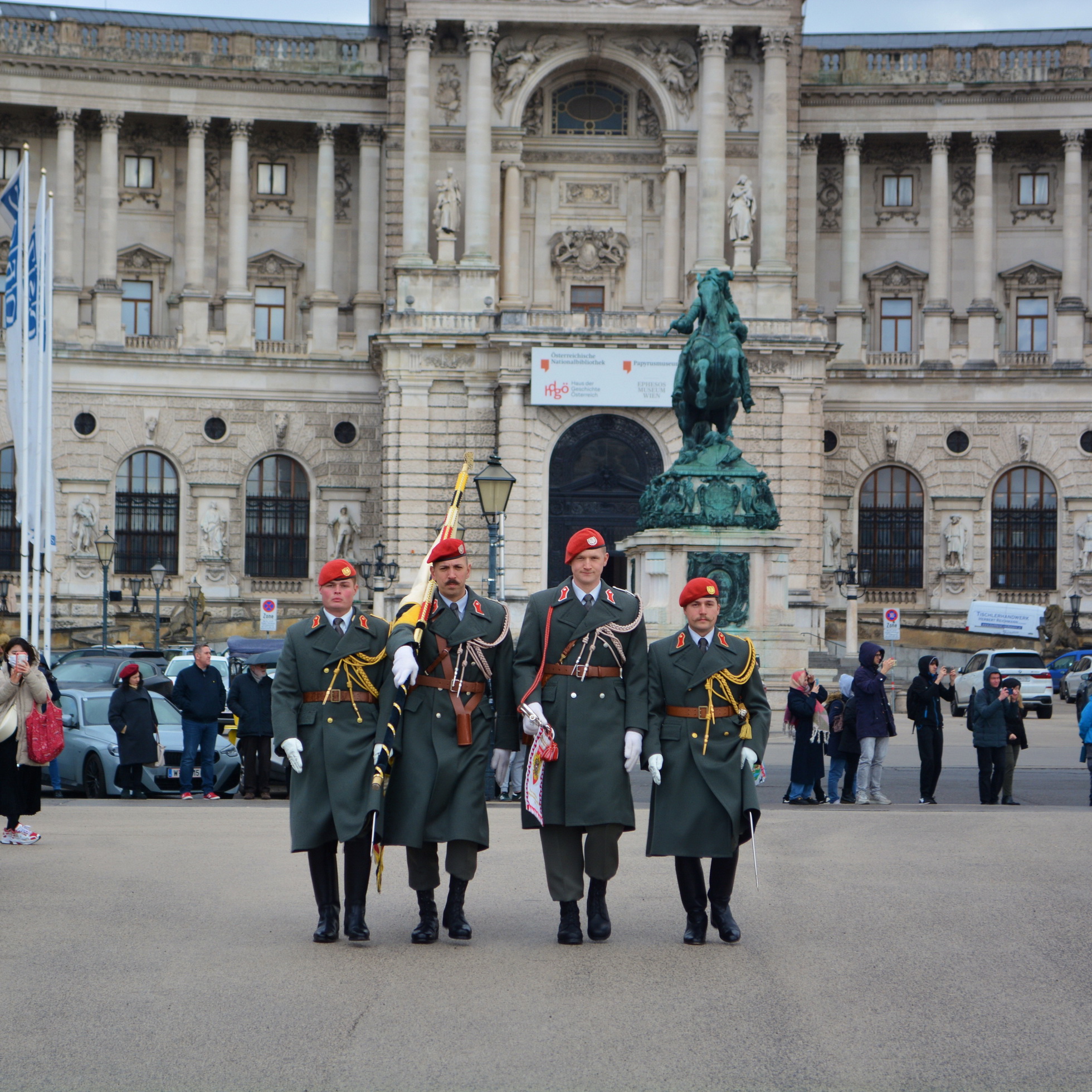 Der Empfang mit militärischen Ehren im „Inneren Burghof“ erfolgte durch die 3. Gardekompanie und der Gardemusik Wien.